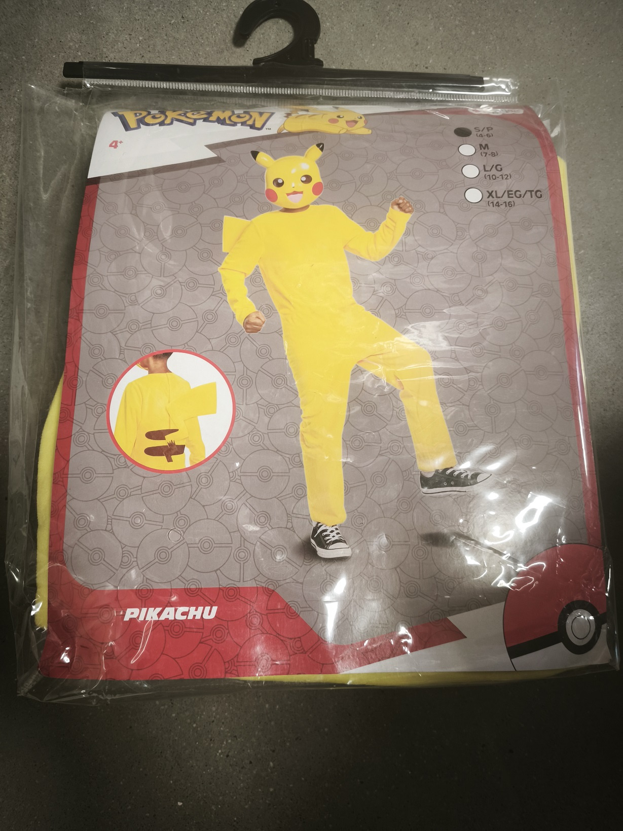 Zawiera żółty kostium z maską, dzięki czemu dziecko może upodobnić się do żółtego Pokemona - Pikachu.