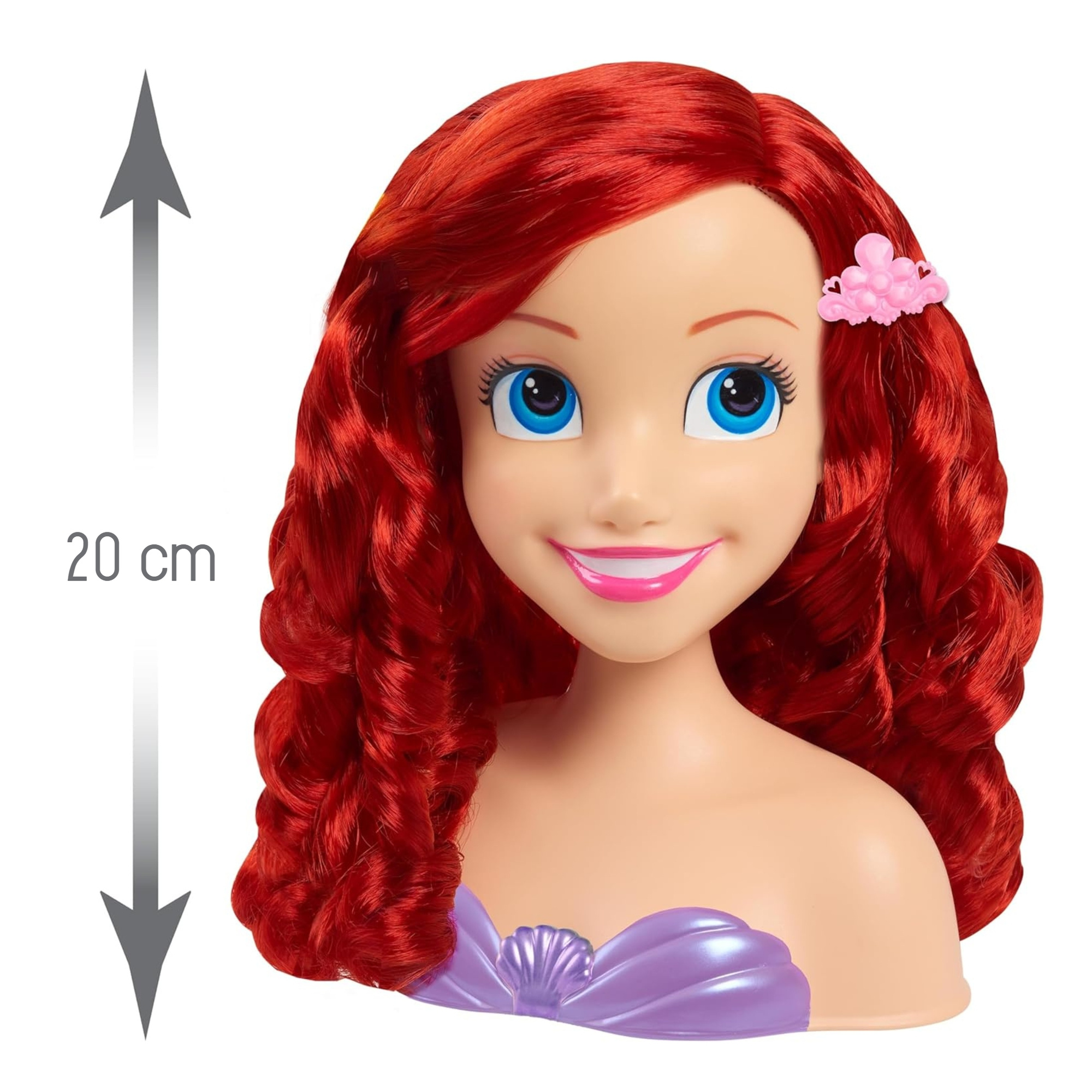 - Głowa do stylizacji wiernie odwzorowuje postać z bajki i przedstawia Arielkę - piękną dziewczynkę o jasnej skórze, niebieskich oczach i czerwonych włosach. Ten wspaniały zestaw pozwoli każdemu dziecku wcielić się w rolę fryzjera i stylisty włosów. Głowa d