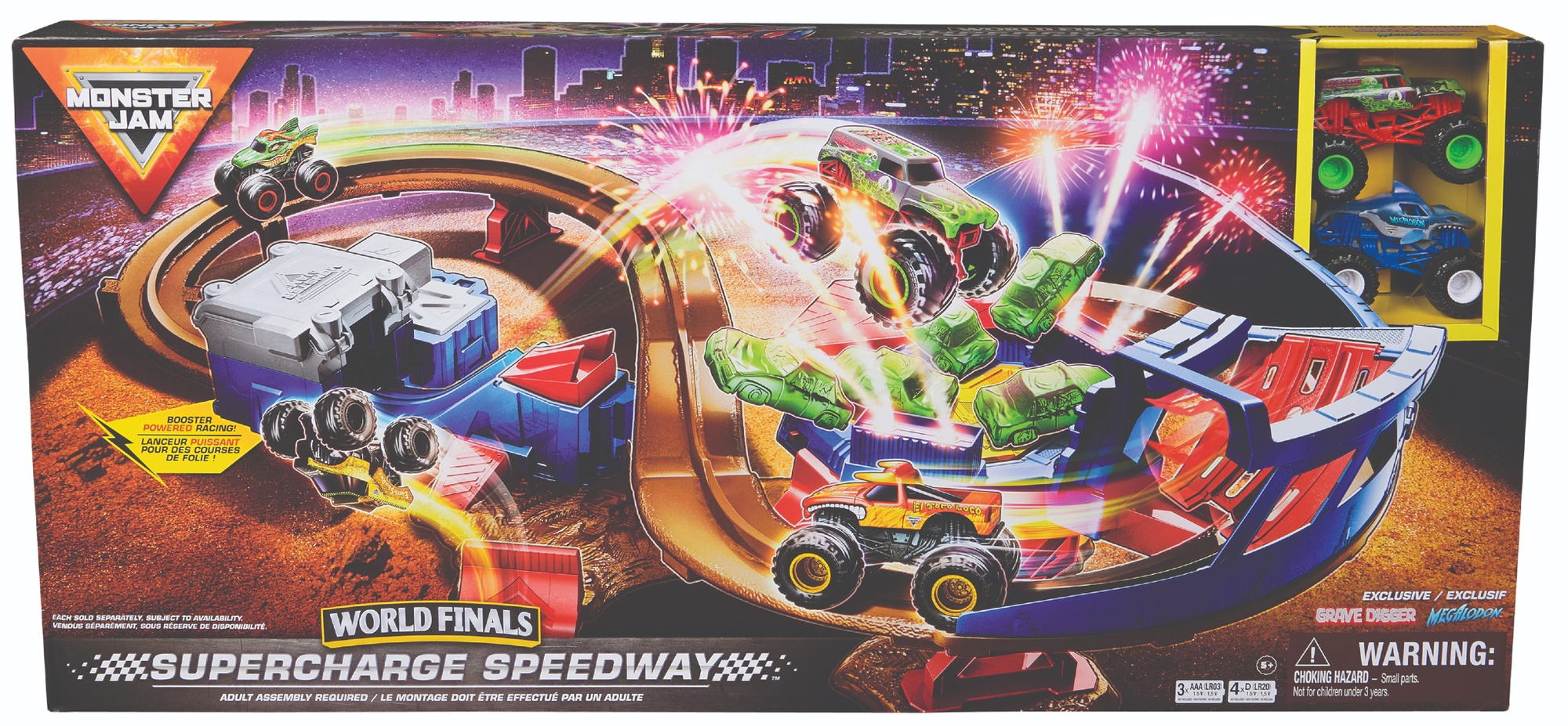 Tor Kaskaderski Samochodowy Monster Jam Supercharge Speedway + Auta 1:64