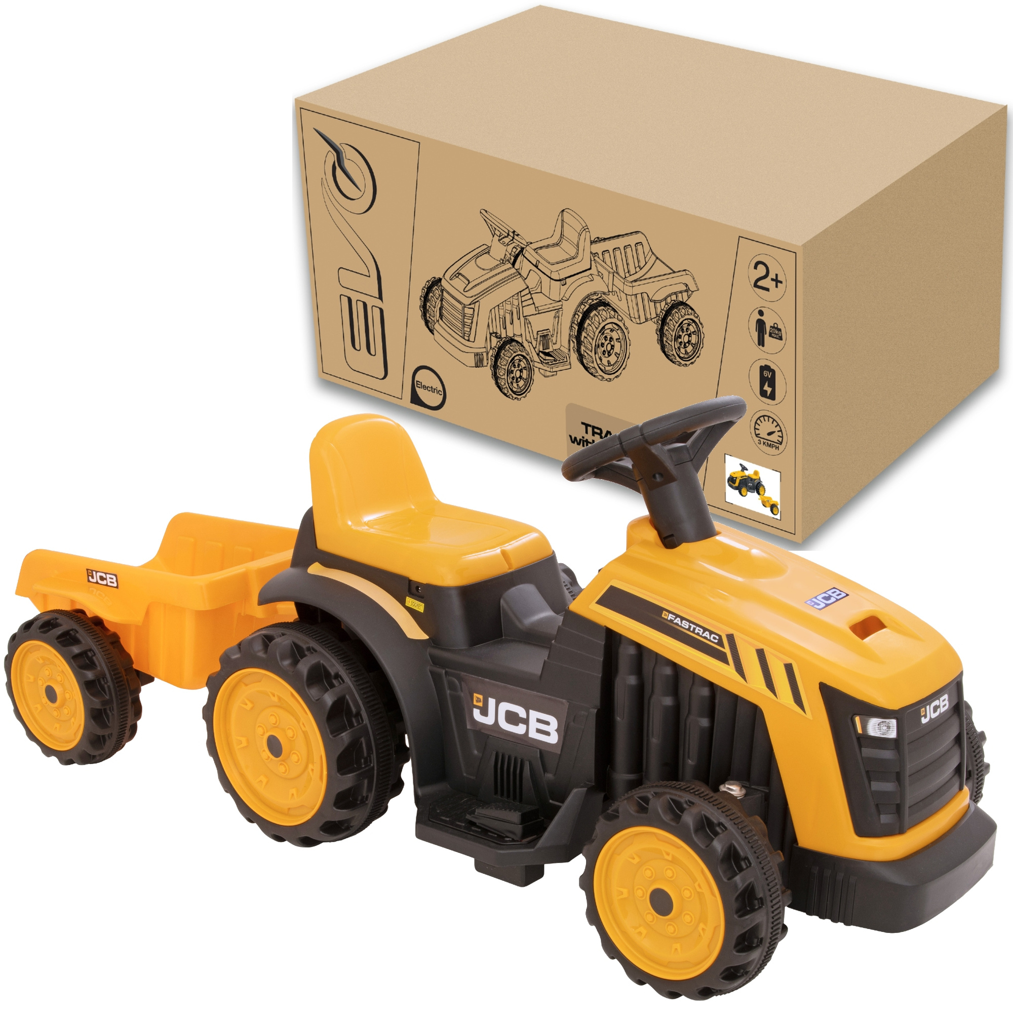 EVO Traktor JCB auto pojazd na akumulator dla dziecka z przyczepą