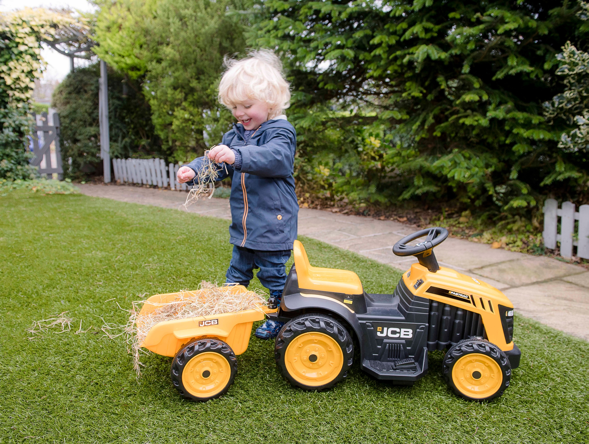 Tractor and Trailer to nie tylko pojazd służący do zabawy, ale także ekologiczny środek transportu, zapewniający wiele zabawy naszym dzieciom. Ruszanie za pomocą przycisku jest niezwykle proste, co sprawia, że sterowanie jest łatwe i bezpieczne w obsłudze. Ponad to, realistyczny wygląd oraz żywa kolorystyka przyciąga oko i zachęca do rozwijania wyobraźni. Natomiast solidne wykonanie z materiałów wysokiej jakości zapewni świetną zabawę na długi czas.