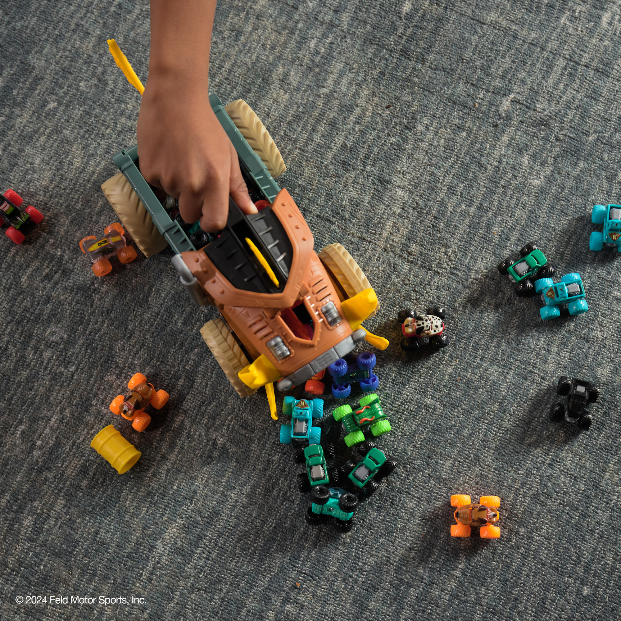 - Monster Jam Mini Jams Megalodon Mad Hog Chomper and Monster Truck to interaktywna zabawką, która łączy ekscytującą zabawę monster truckami z uprzątaniem w domu!