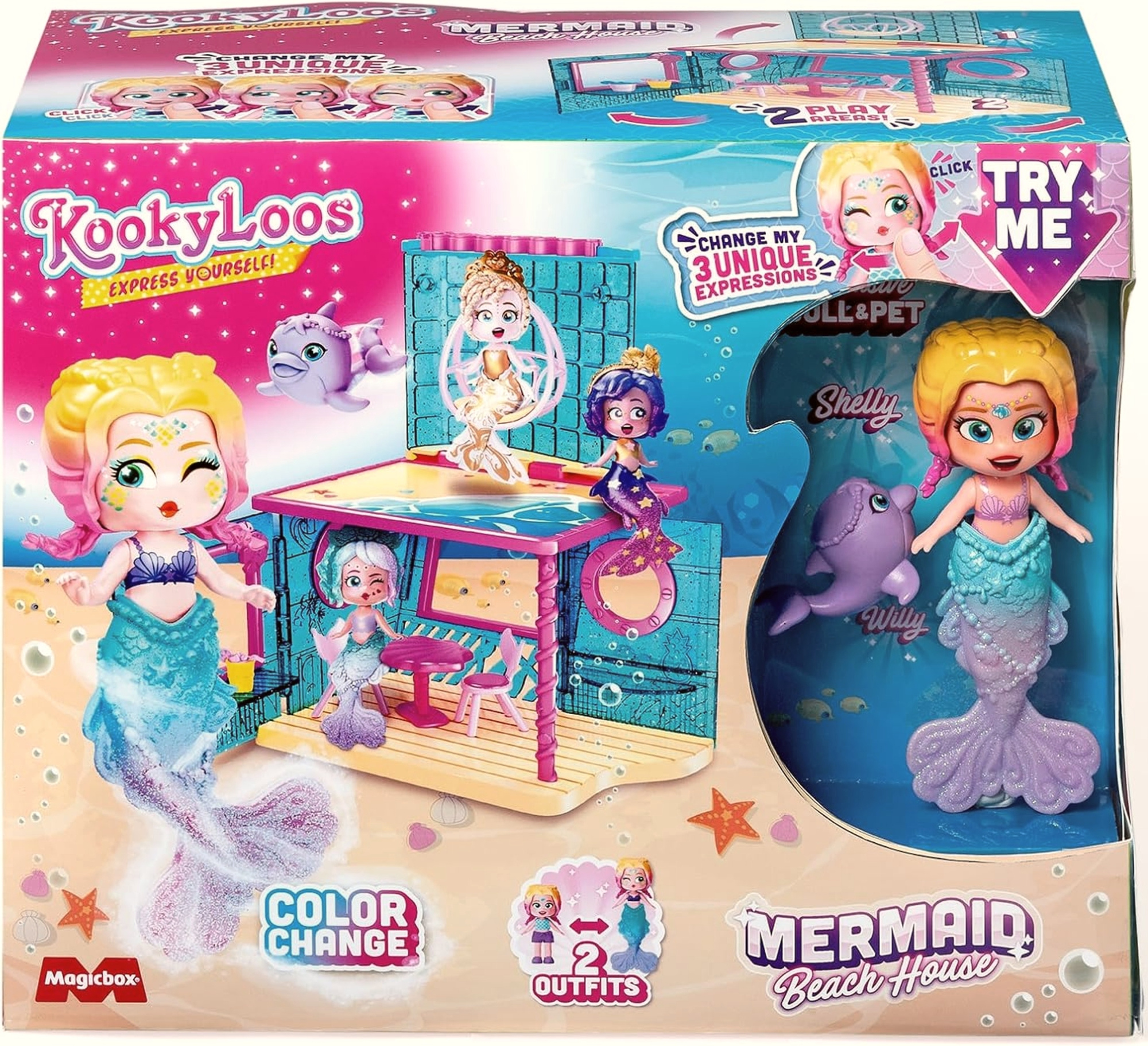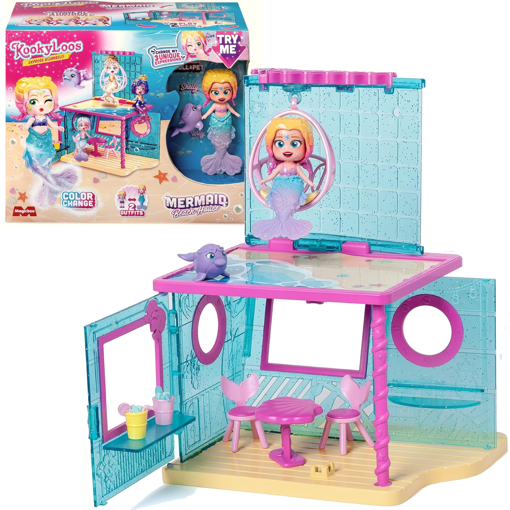 Kookyloos Zestaw Mermaid Beach House Figurka Kolekcjonerska Shelly Syrena Zmieniająca Kolor Dom dla Syren + Akcesoria