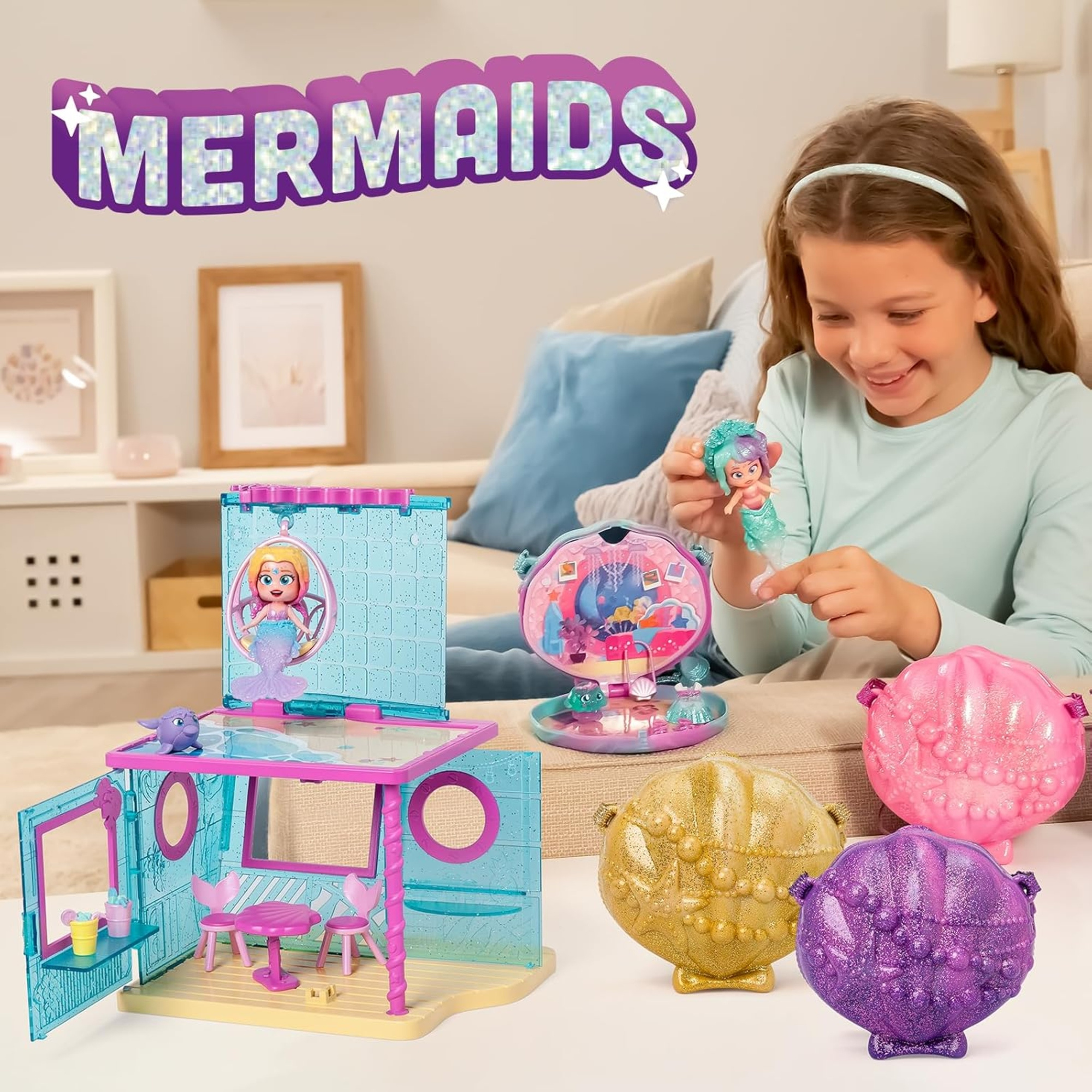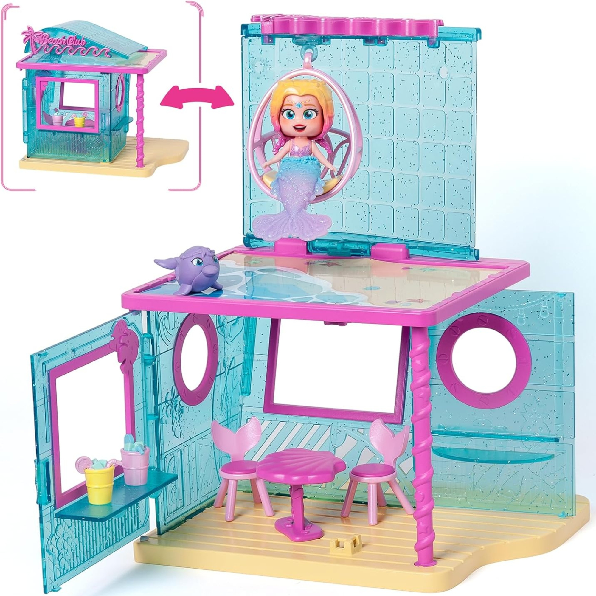 Po za domkiem, do zebrania 4 zestawy figurek z muszelkami, w których znajdują się pozostałe syrenki(sprzedawane oddzielnie). Zbierz je wszystkie i wybierz się na przygodę życia!