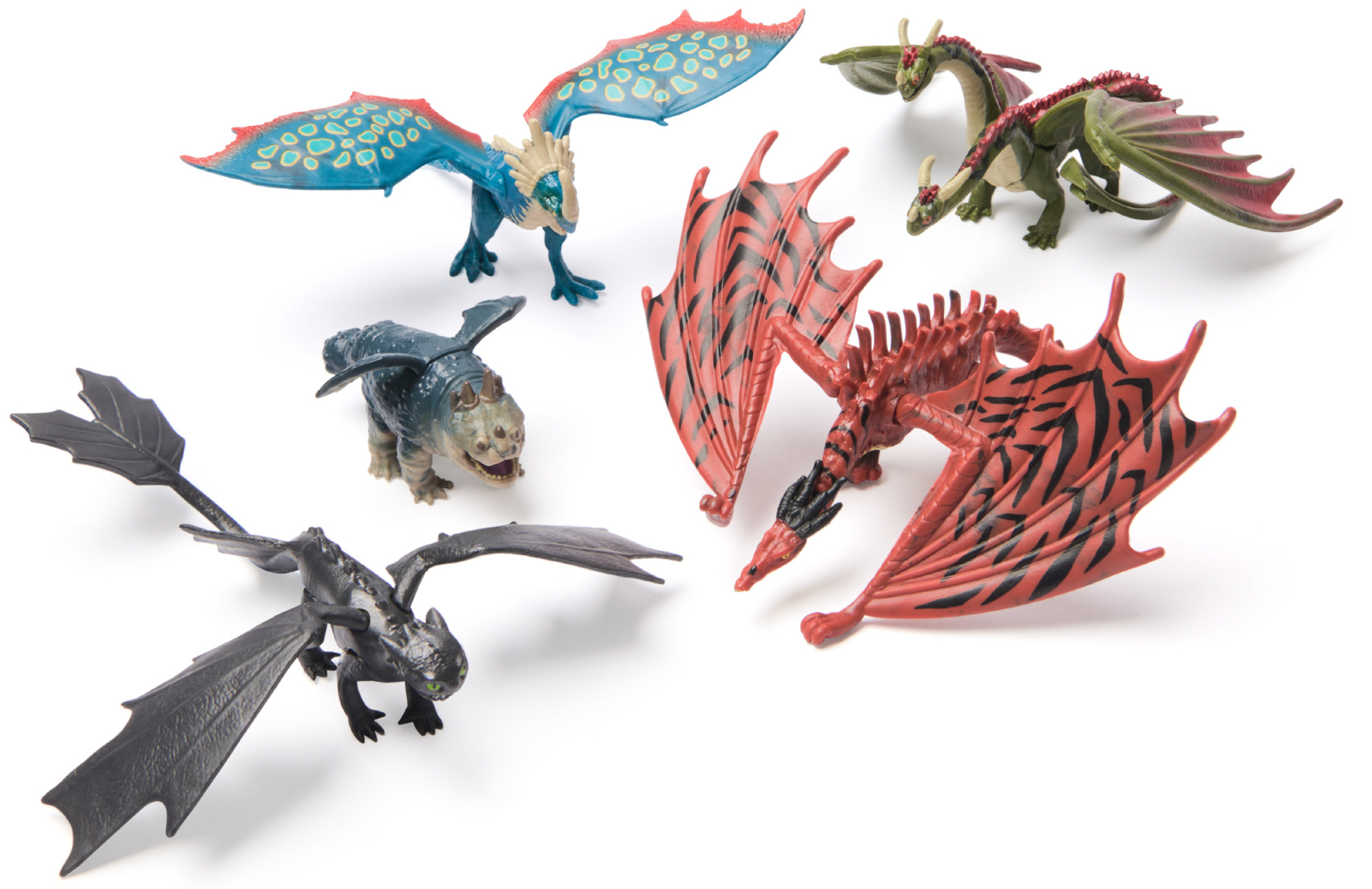 Zbierz wszystkie ulubione gatunki: Night Fury (Szczerbatek), Gronkle, Deadly Nadder (Ostroogon), Hideous Zippleback i Monstrous Nightmare – każda figurka w skali 5 cm z wiernymi detalami z filmu. -