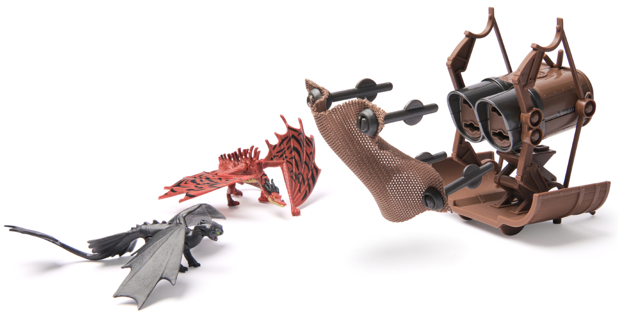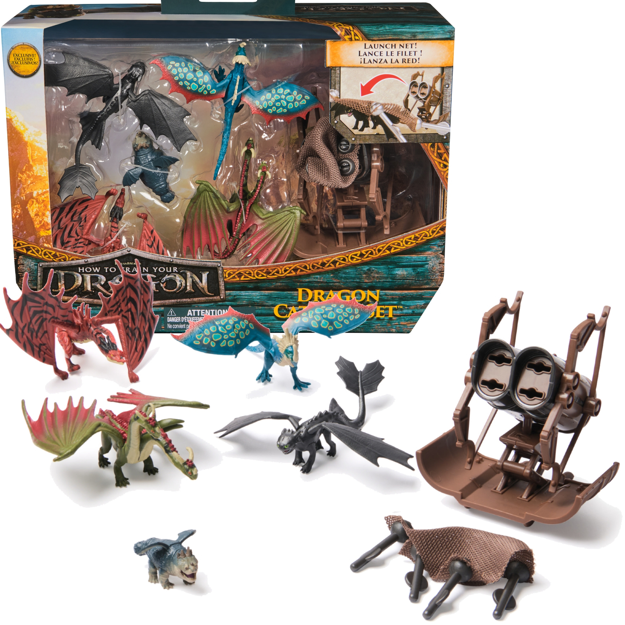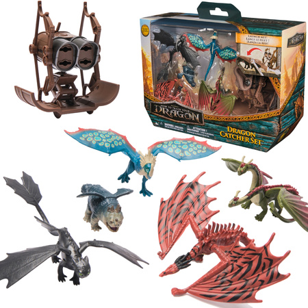 Przenieś się znów na Wyspę Smoczą i zacznij polowanie na legendarne bestie z zestawem pięciu kolekcjonerskich figurek o wielkości 5 cm. Dołączony miotacz Hiccup’s Mangler i siatka pozwalają na odtwarzanie ikonicznych scen z filmu, gdy maluchy rzucają sieci, by schwytać smoki.