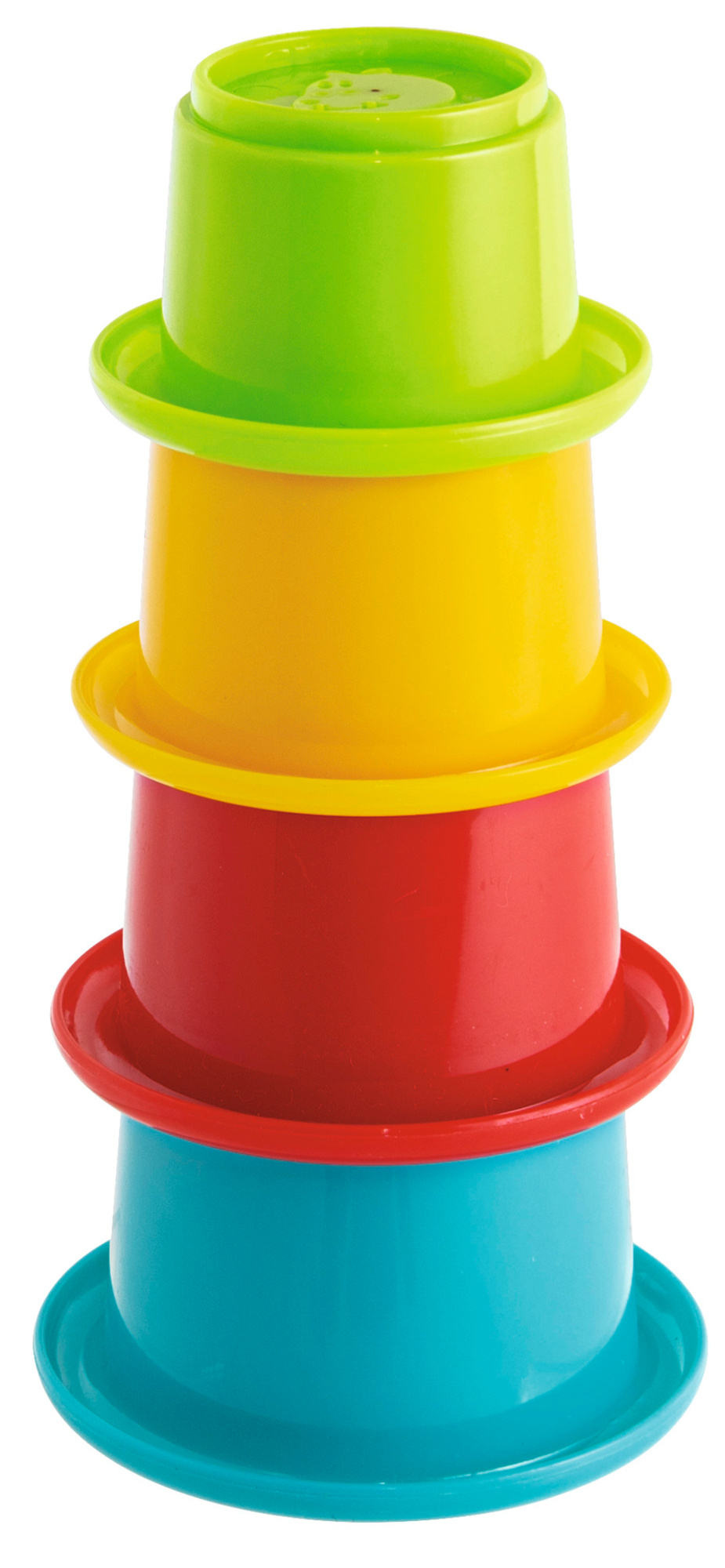 Wieża do układania - kolorowe kubeczki do układania jeden na drugim, rozwijają zdolności manualne i uczą zależności wielkości.