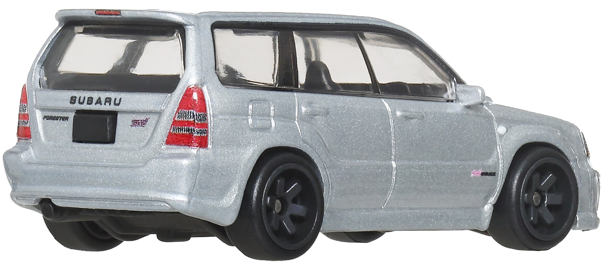 - Auto pochodzi z linii Hot Wheels Car Culture Fast Wagons, która jest poświęcona kultowym szybkim kombiakom z różnych dekad! Ten Subaru Forester STI w kolorze srebrny metalik o kultowym kształcie karoserii jest odwzorowany w skali 1:64.