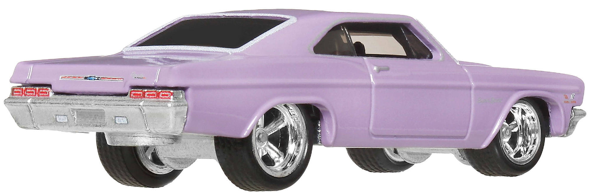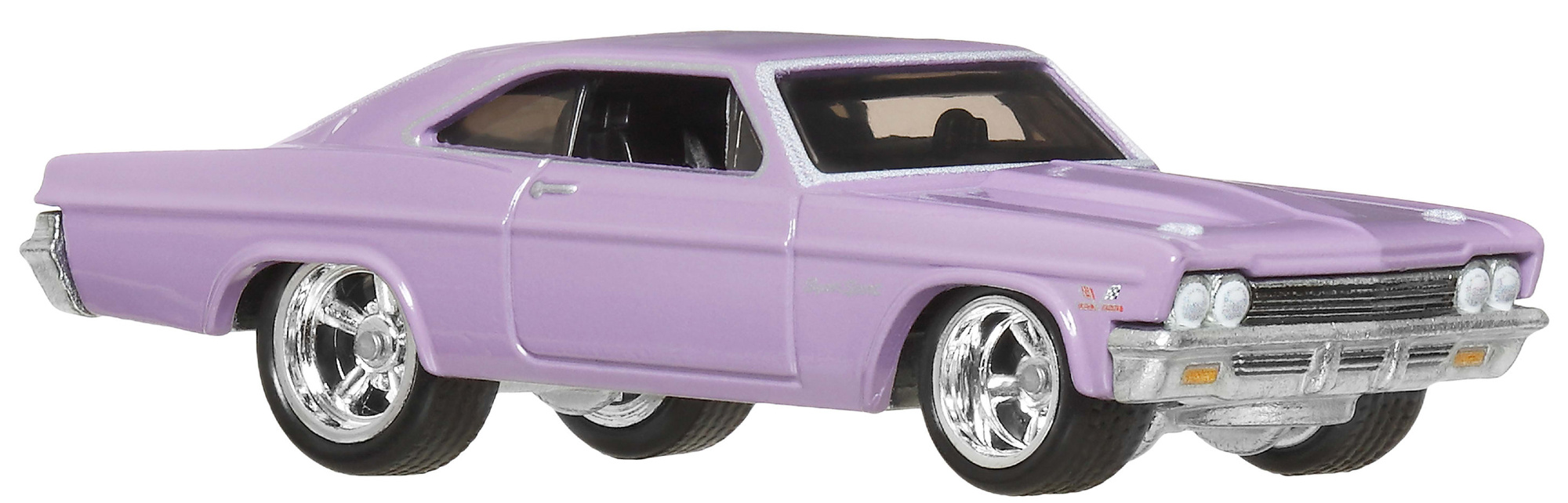 - Ta fioletowa Impala Chevy 1966 o kultowym kształcie karoserii jest odwzorowana w skali 1:64, z dbałością o każdy detal, który fani mogą rozpoznać z filmu. Chevrolet "Chevy" Impala pojawił się w filmie Fast & Furious jako stylowy muscle car.