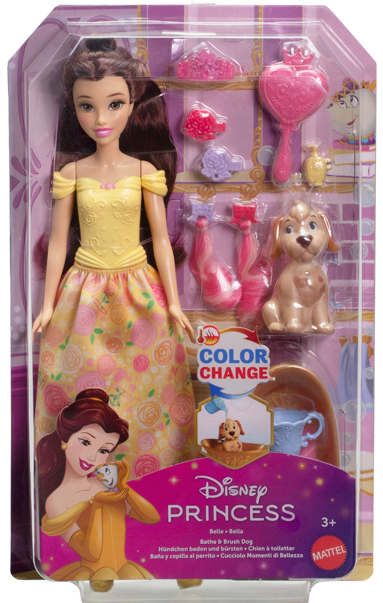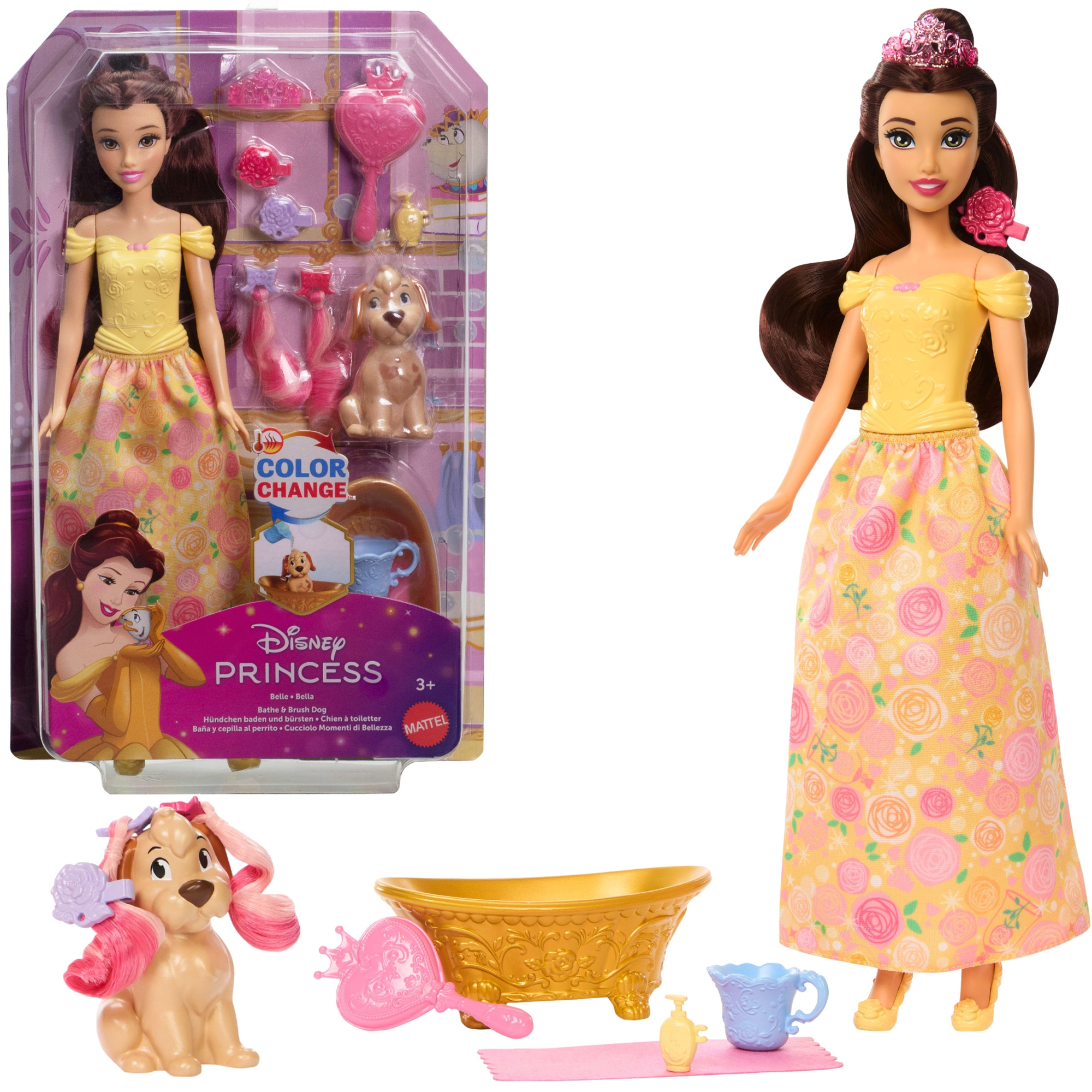 Zanurz się w magiczny świat bajki „Piękna i Bestia” z uroczym zestawem do zabawy, w którym główną rolę gra księżniczka Bella i jej uroczy piesek! Ten pięknie wykonany komplet zachwyci wszystkie miłośniczki księżniczek Disneya, oferując kreatywną zabawę w kąpiel i stylizację.