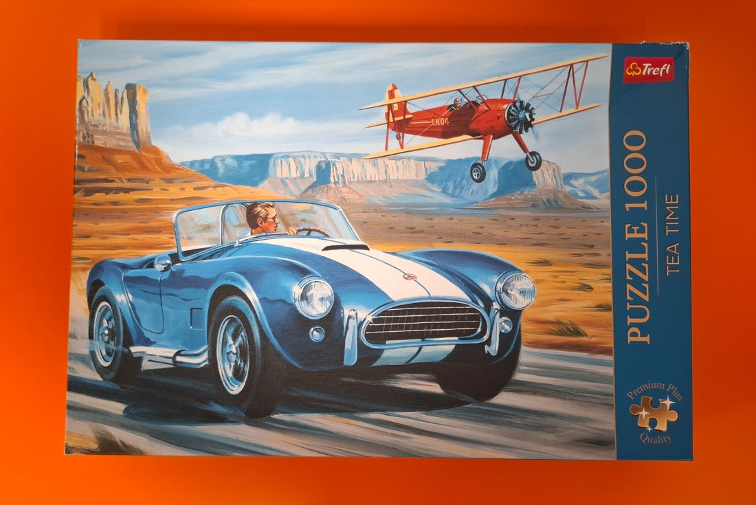 Zestaw składa się z 1000 elementów i umożliwia stworzenie przepięknego obrazka przedstawiającego pustynny wyścig auta z samolotem.