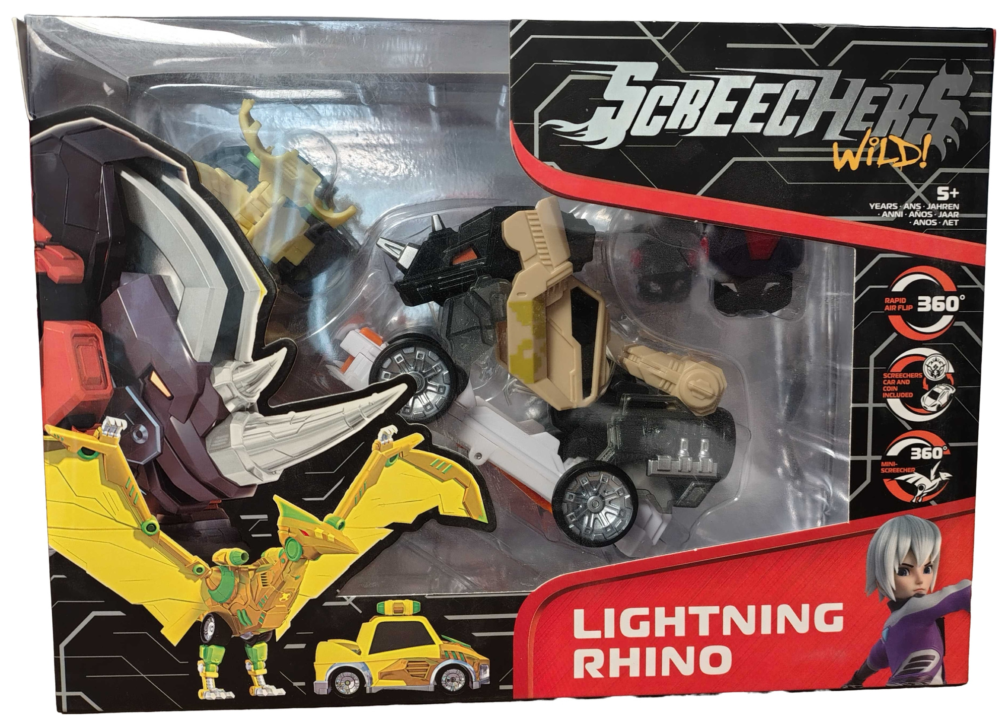 Screechers Wild! Zestaw Tansformujących Pojazdów Lightning Rhino Nosorożec Dinozaur