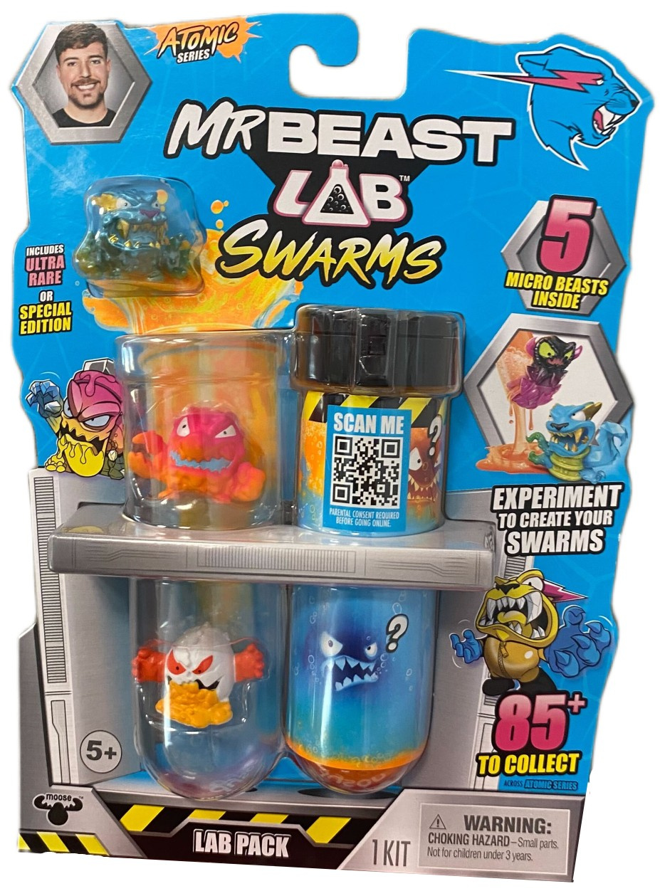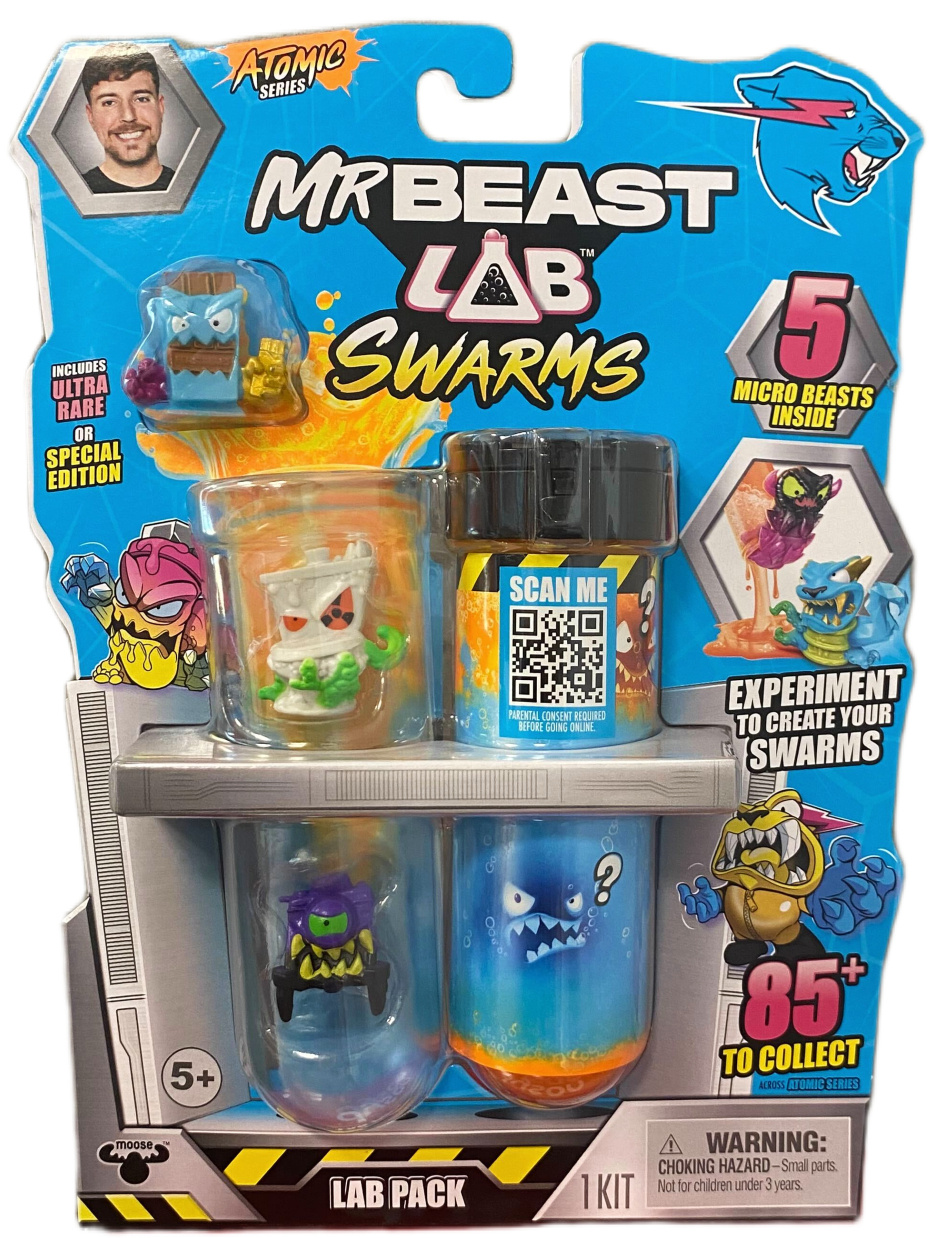 - Zanurz się w pełen emocji świat MrBeast Lab Swarms dzięki zestawie figurek Lab Pack! Każdy zestaw kryje 5 kolekcjonerskich postaci, inspirowanych zwariowanymi eksperymentami z laboratorium MrBeasta. Idealne połączenie pasji do youtubera i radości płynącej