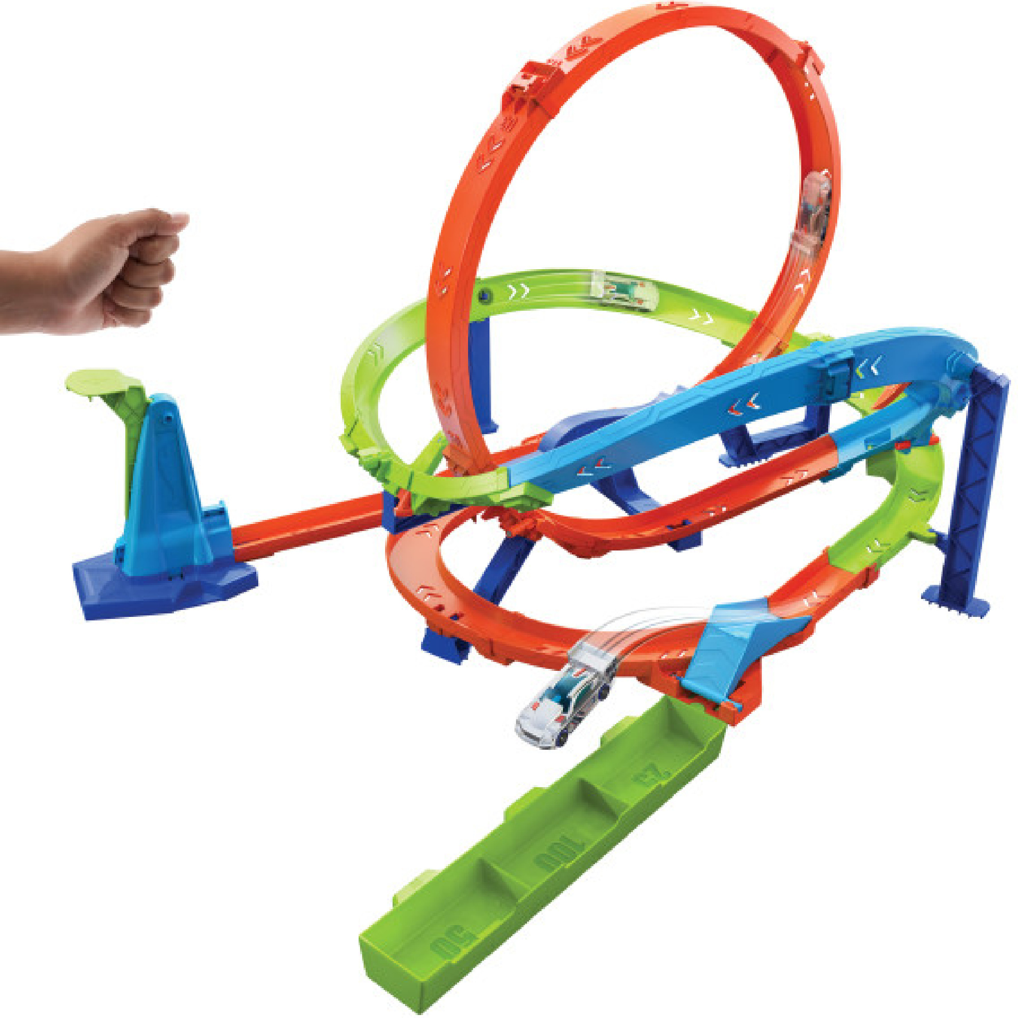 - Wejdź na linię startu z zestawem Hot Wheels Stunt Tracks Zakręcone Tornado, który łączy w sobie wyścigi, akrobacje i zderzenia na jednej, kompaktowej konstrukcji.