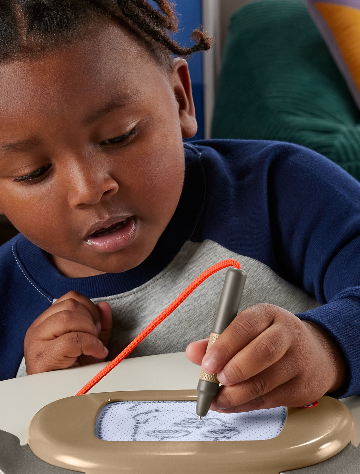 Poręczny „ogonek”-rysik doskonale leży w małej rączce, umożliwiając precyzyjne kreślenie linii, kształtów i liter.