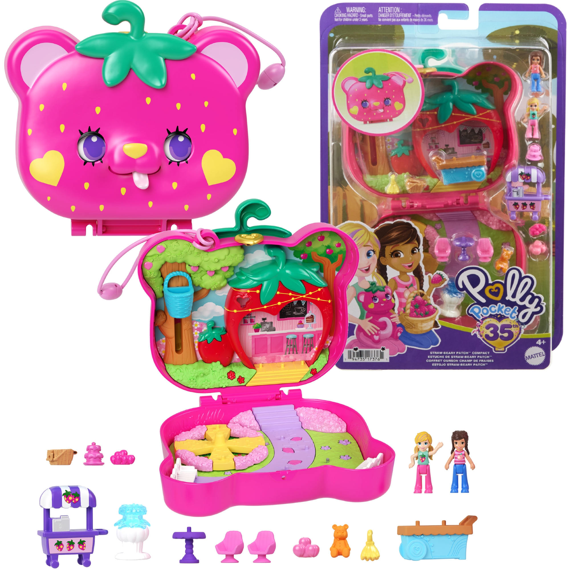 - Przenieś się do kolorowego ogródka pełnego zabawy z Polly Pocket Truskawkowy miś Zestaw kompaktowy! Ta urocza szkatułka w kształcie truskawkowego misia to gwarancja godzin kreatywnej rozrywki dla małych odkrywców.