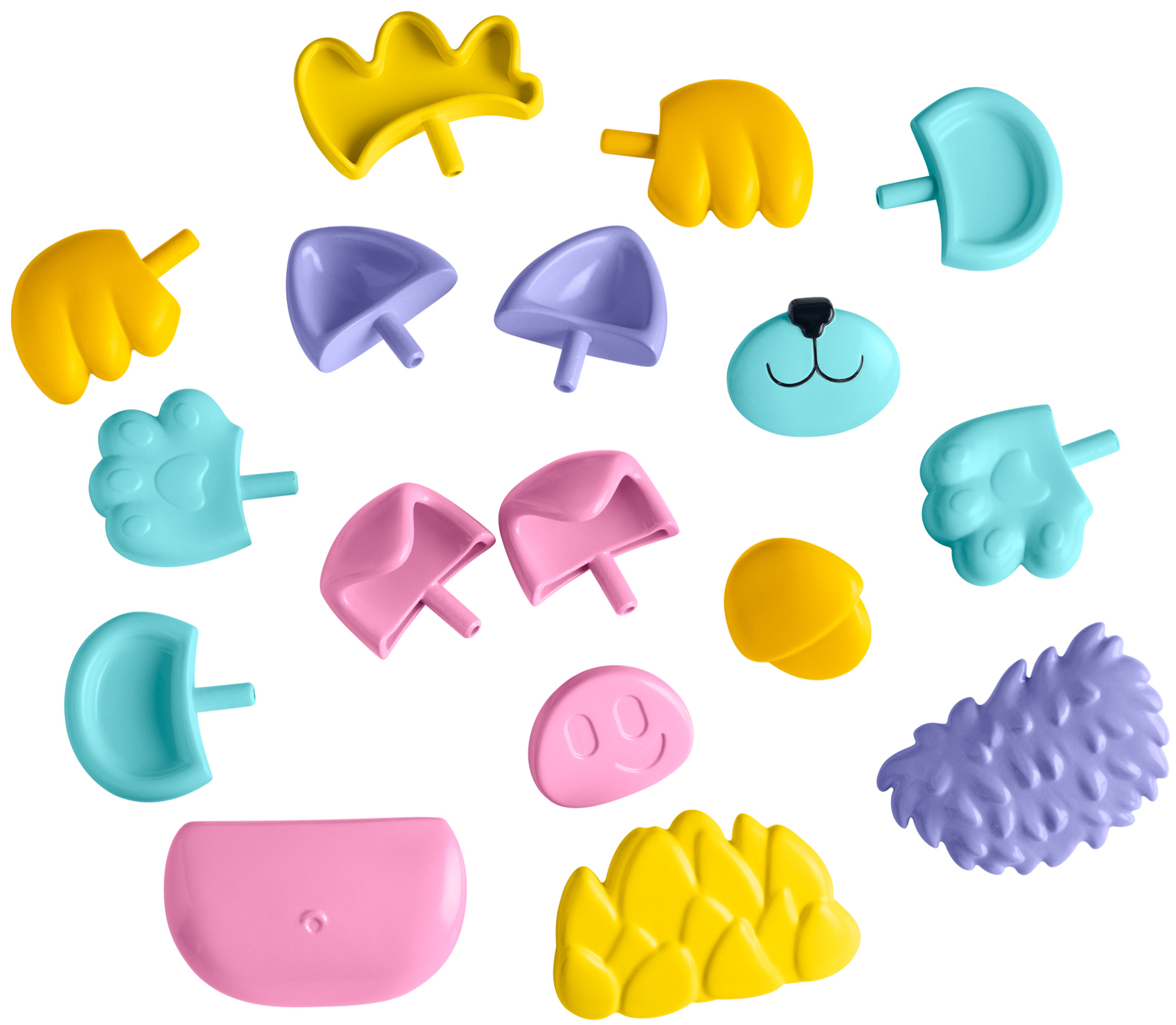 W zestawie znajdziesz m.in. różnokolorowe oczka, uszka o różnych kształtach, zabawne grzywki i dodatki, które łatwo montować – wszystko odpowiednie do małych rączek.