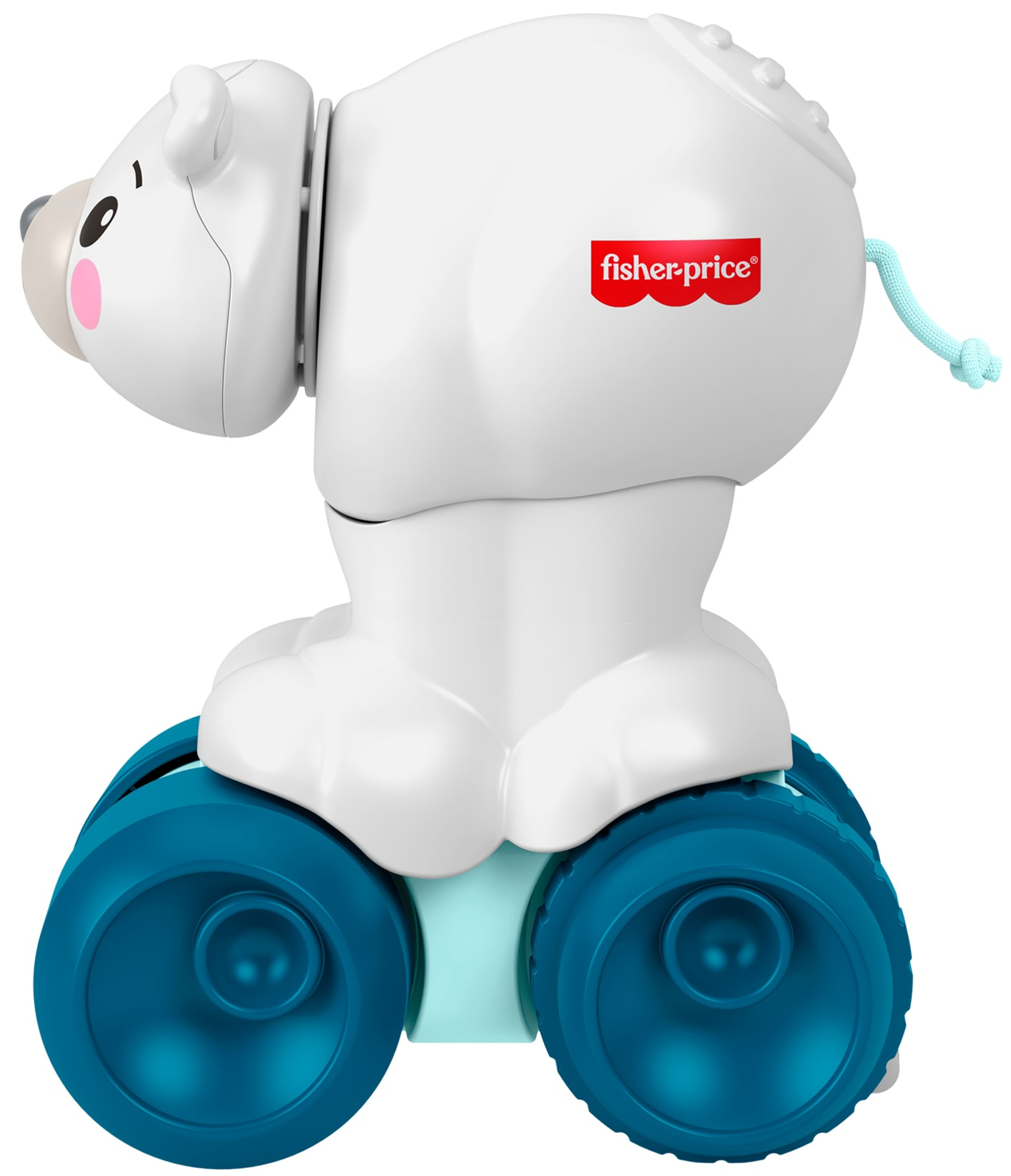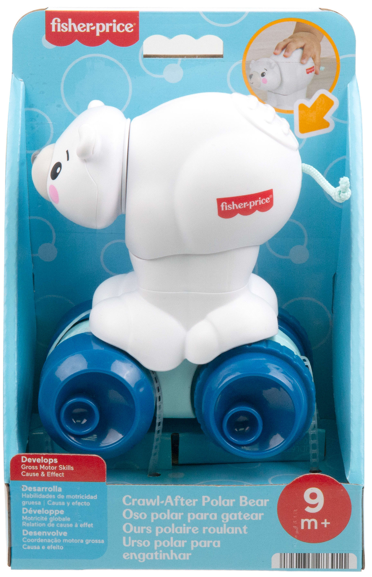 - Zachęć swojego szkraba do pierwszych kroków na czworakach z uroczym Misiem polarnym na kółkach „Raczkuj za mną” od Fisher-Price! Ten wesoły kompan popędzi przed maluchem, motywując go do podążania i odkrywania świata na własnych rączkach i nóżkach.