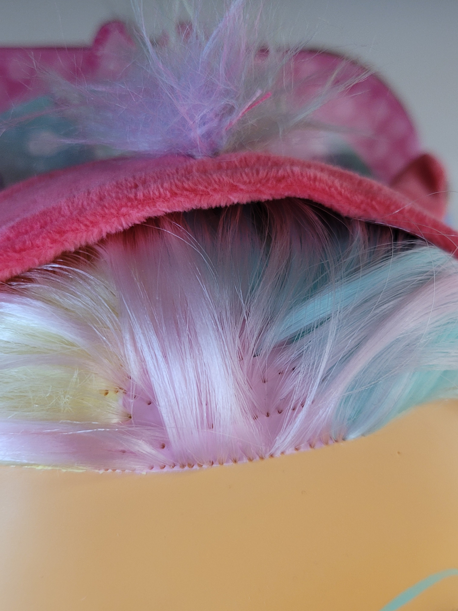 - nie przymocowana do opakowania, prześwity na głowie, trudne do rozczesania włosy