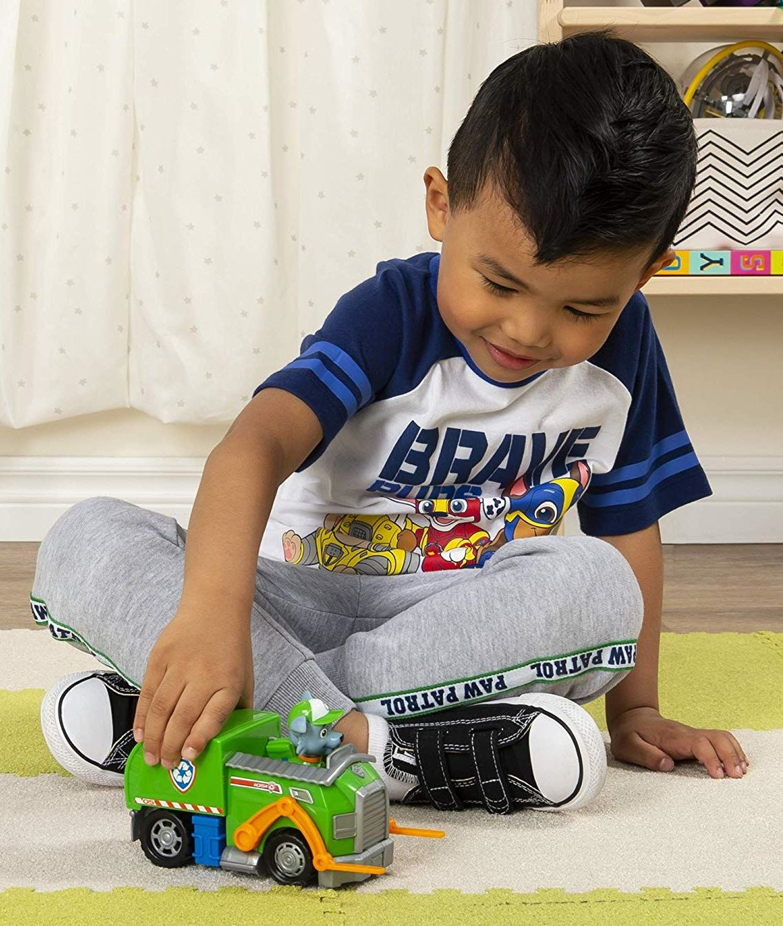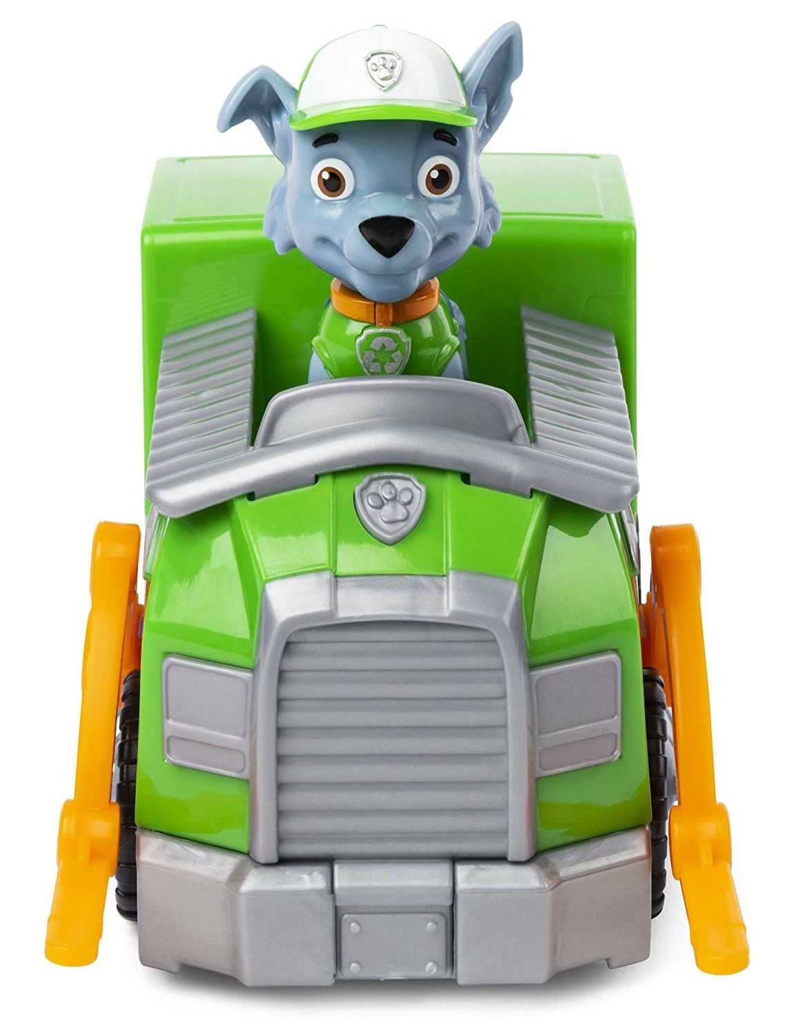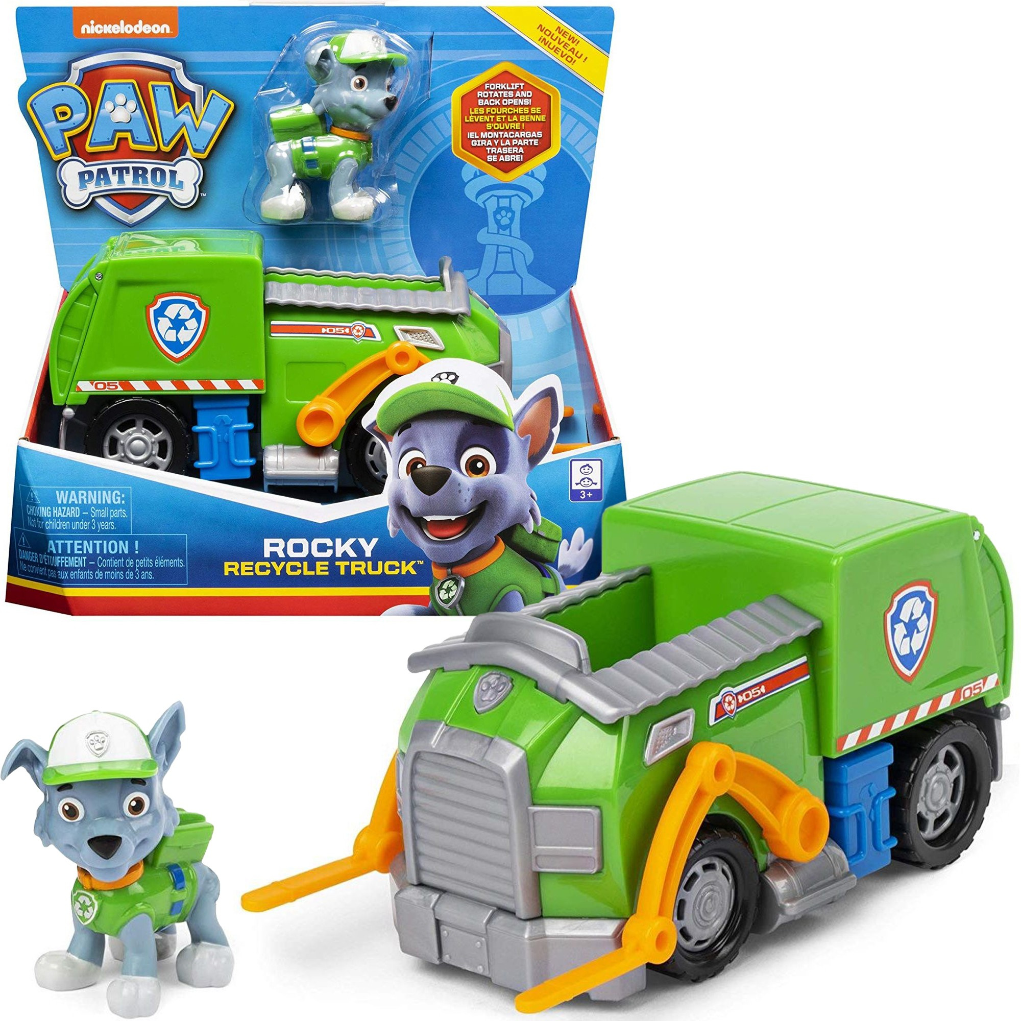 - Zestaw składający się ze śmieciarki Rocky'ego wyposażonej w ruchome kółka oraz figurki Rocky'ego, z popularnej serii zabawek Psi Patrol. Spin Master 20119367