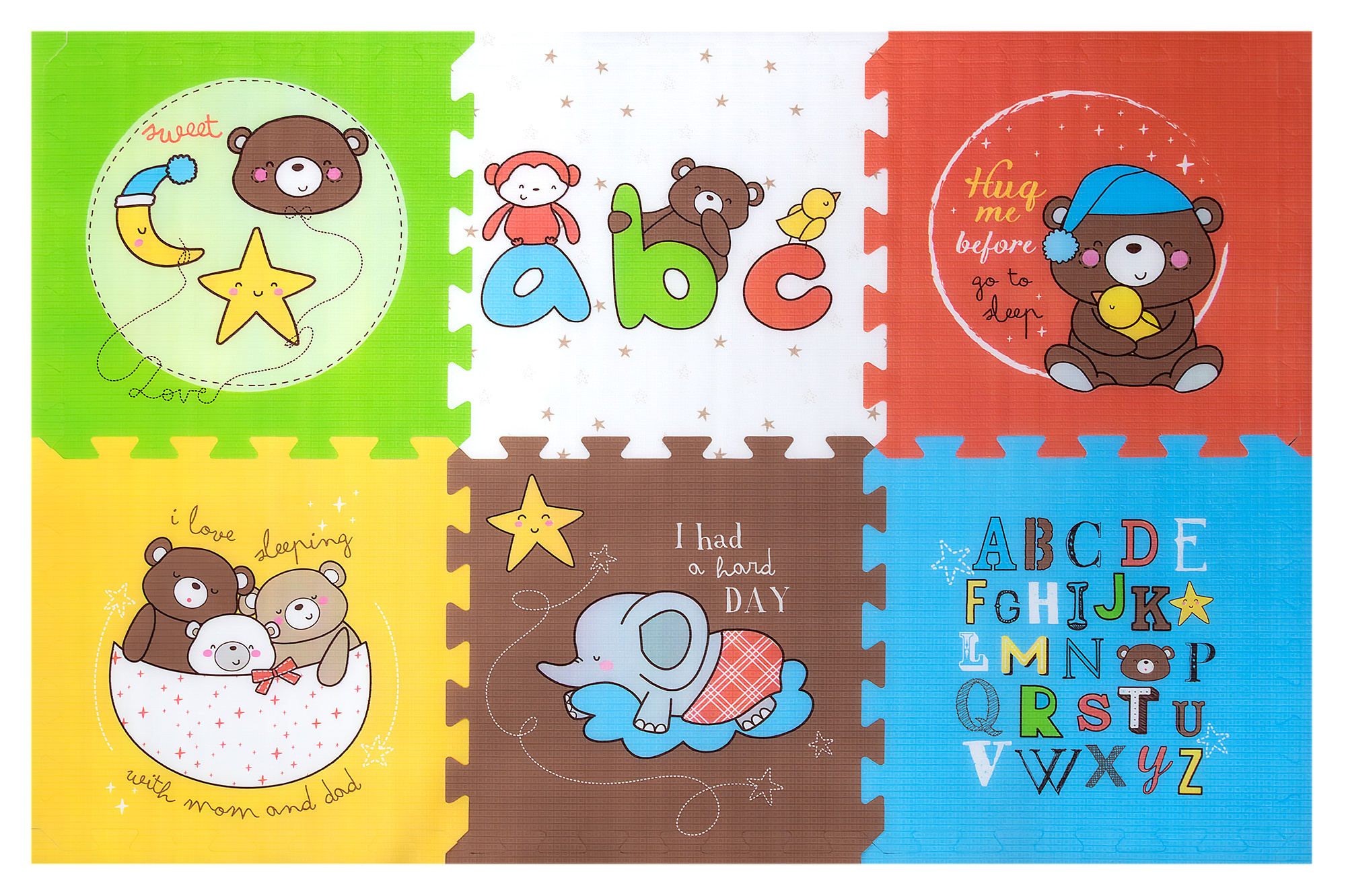 Humbi mata puzzlowa gruba 1,5 cm XXL zwierzątka literki 6 elementów 165 x 112 cm