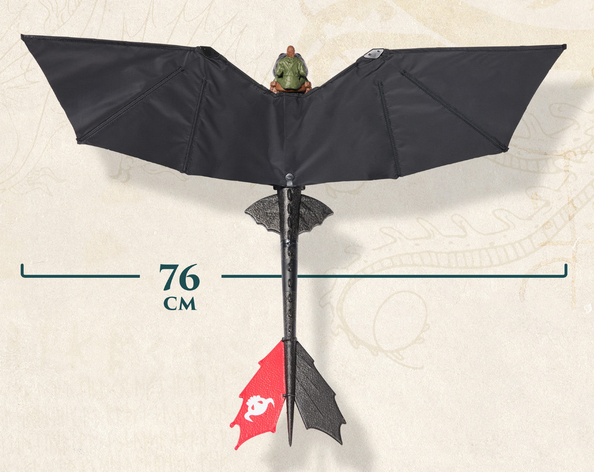 - Regulowany ogon, którym sterujesz lotem: możesz wykonywać zakręty, śliskie manewry i inne lotnicze sztuczki jak półsmoki – dokładnie tak jak w filmie.