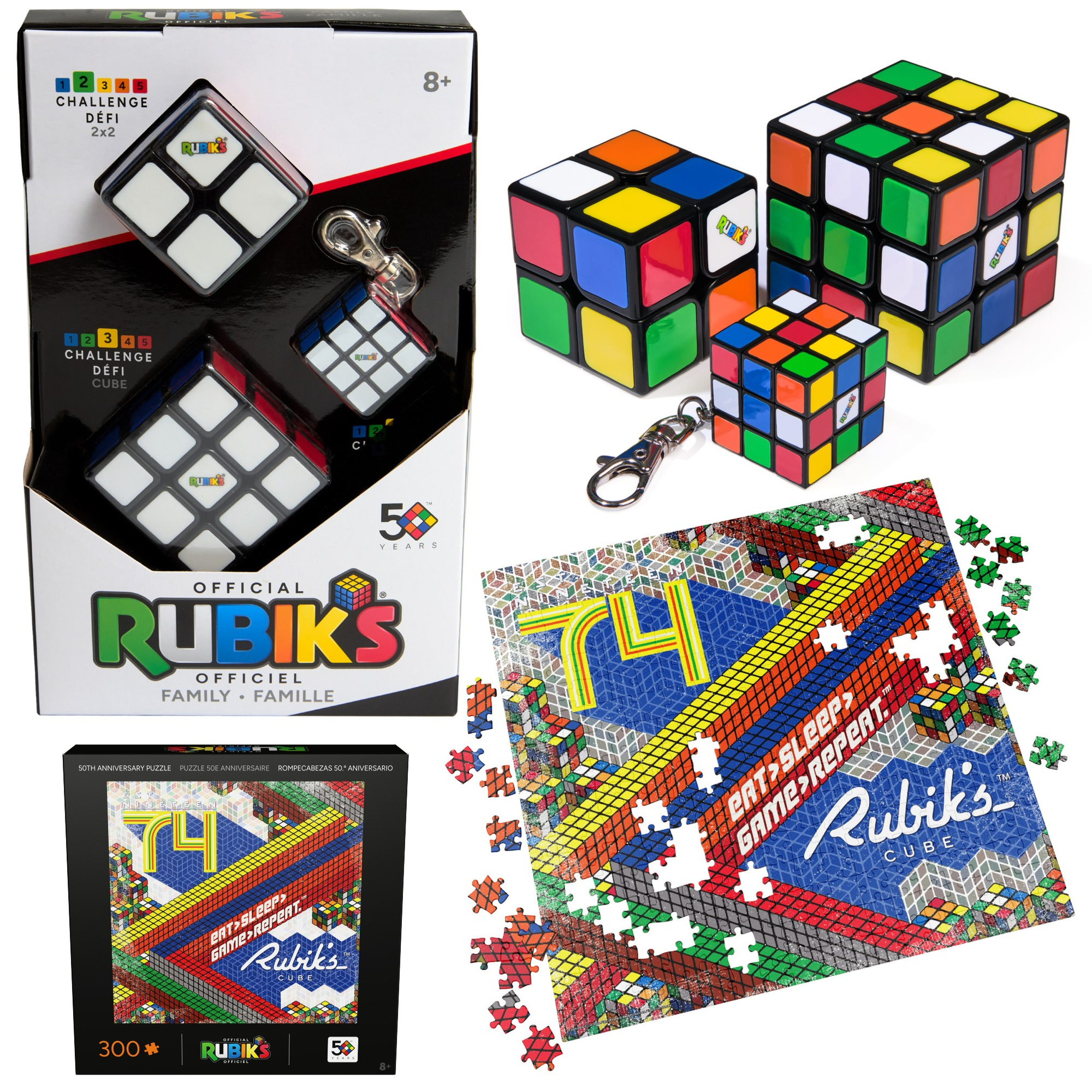 Zestaw 4W1 Oryginalna klasyczna Kostka Rubika Breloczek Rubik's (2 kostki + breloczek) + Puzzle Kostka Rubika Rubik's Cube 50-lecie