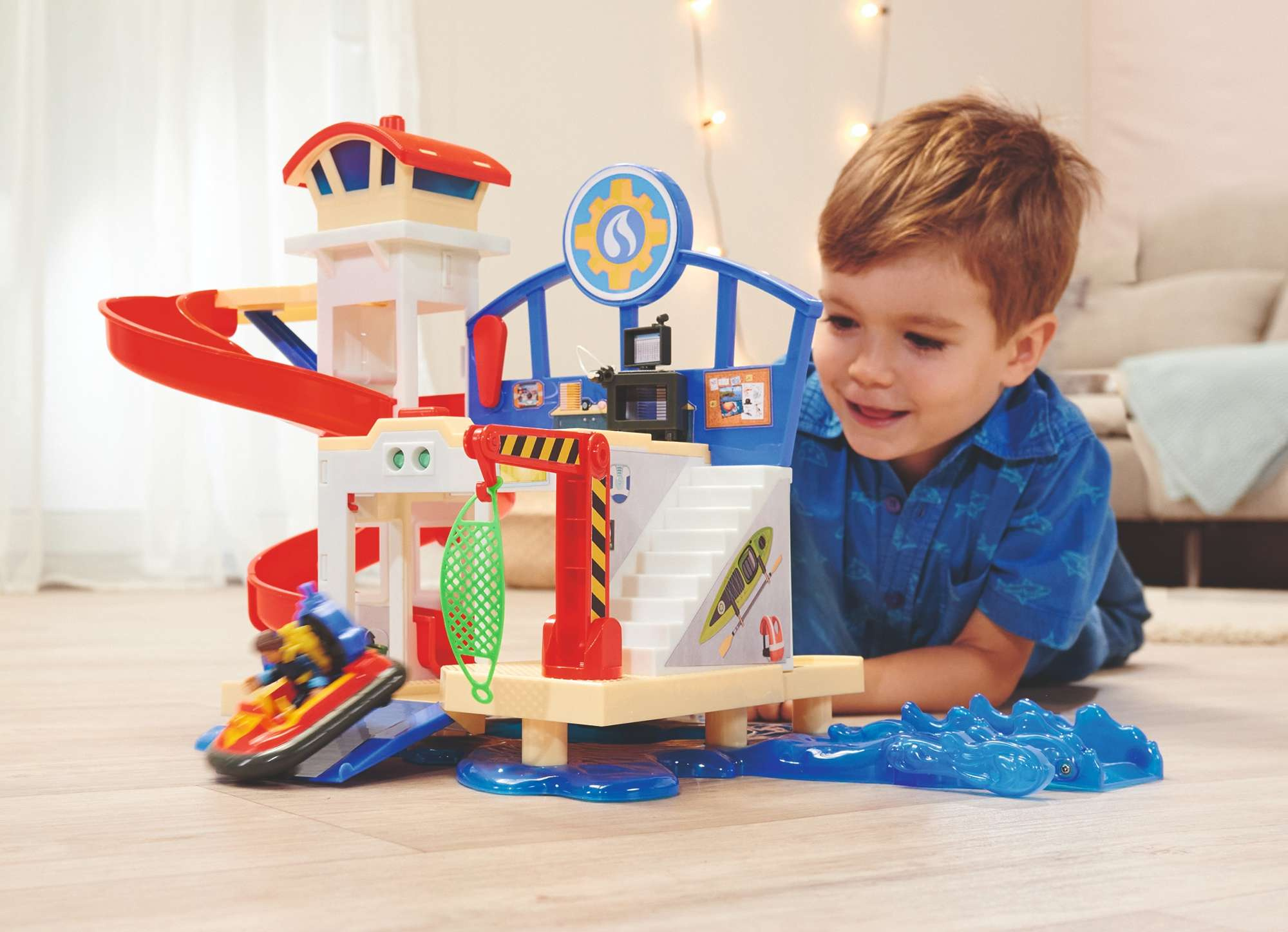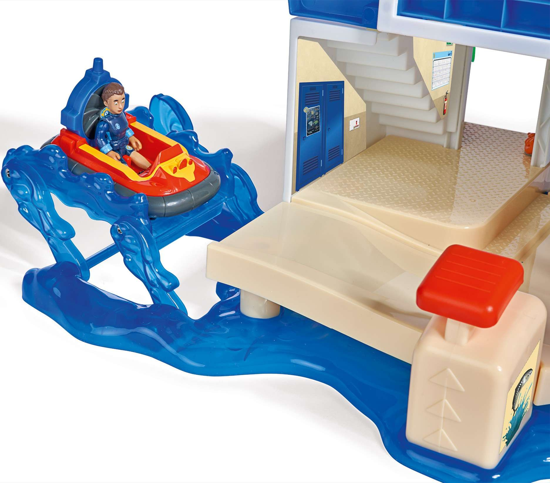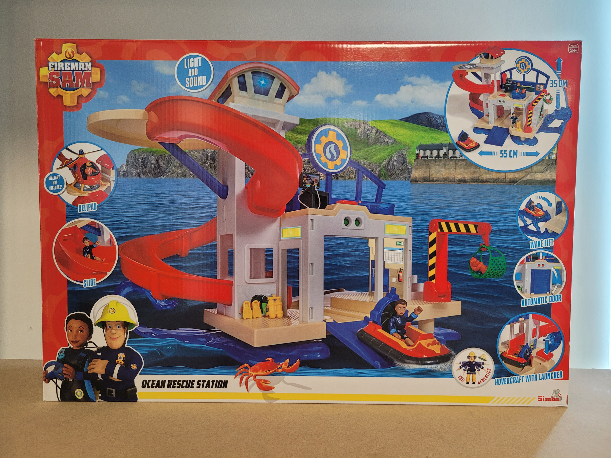 Ratunkowa stacja wodna została stworzona z materiałów wysokiej jakości w charakterystycznych dla Strażaka Sama barwach. Stacja oceaniczna ma dwa poziomy do zabawy, ruchome elementy, w tym otwierane drzwi, imitacje fali morskich.