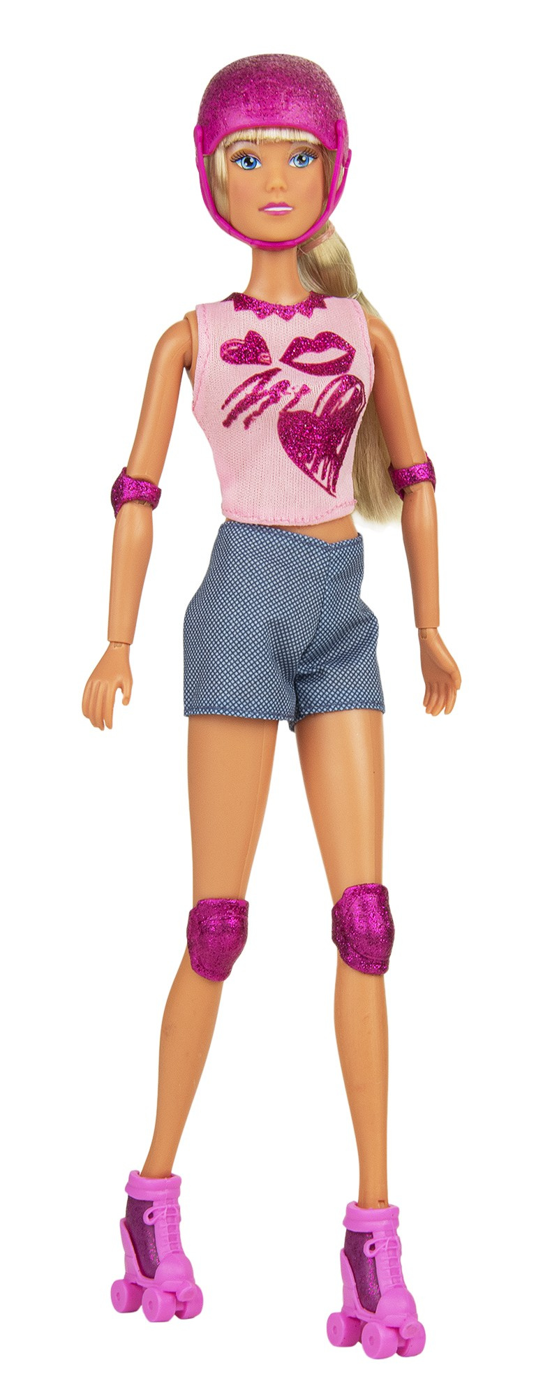 Steffi ma długie blond włosy i jest ubrana w granatowe szorty i różową koszulkę ozdobioną brokatem. Dodatkowo ma różowe rolki, które można zmienić na buciki na obcasie, a także brokatowy kask i ochraniacze. Lalka ma kilka punktów artykulacji, dzięki którym można ustawić ją w różne dynamiczne pozy i tworzyć wspaniale historii.
