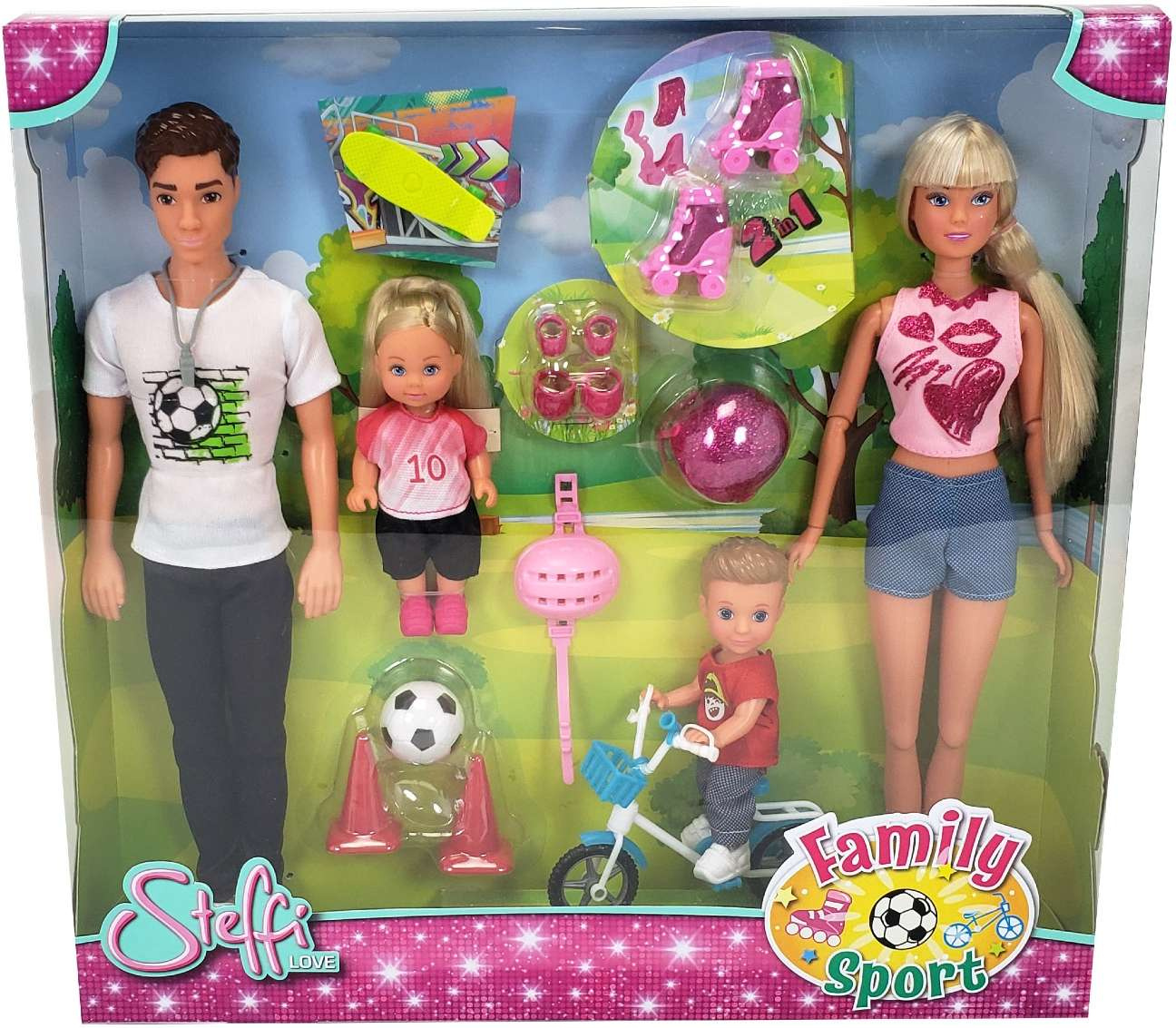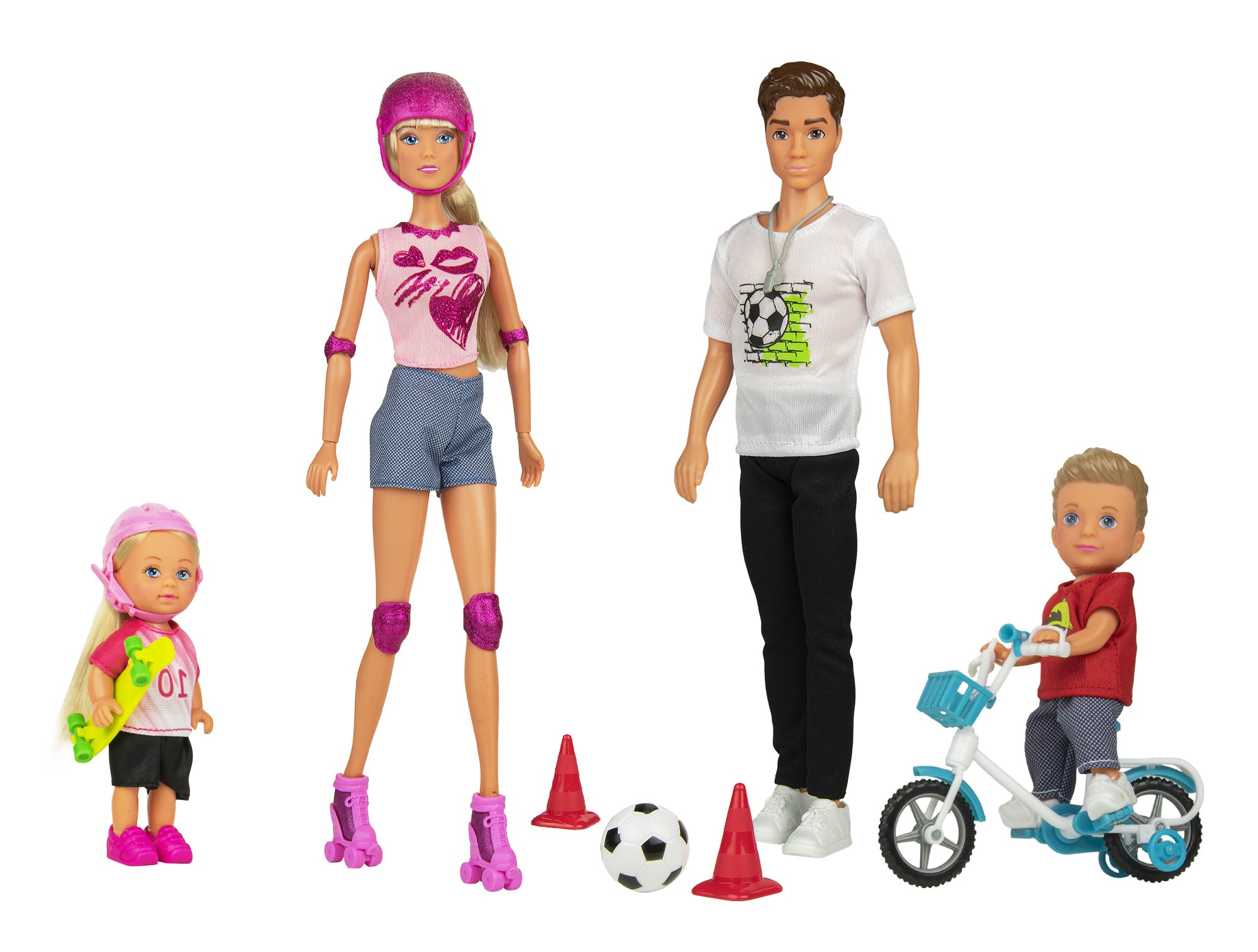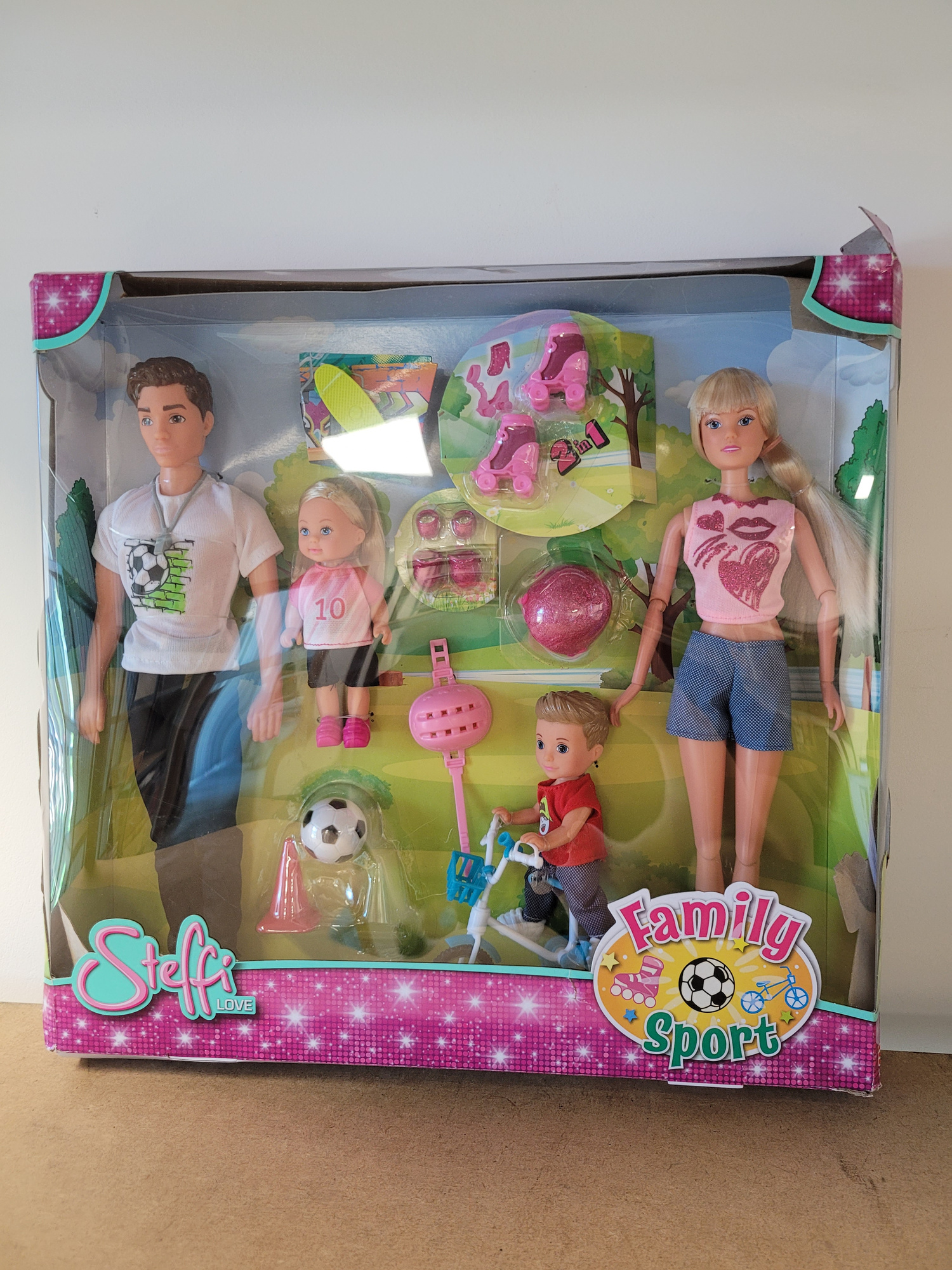 - W zestawie lalka Steffi, lalka Kevin, córka i synek uprawiające sport, akcesoria