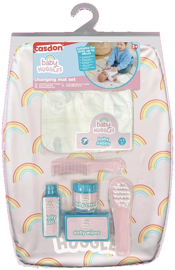 Dziecko może poczuć się jak prawdziwy opiekun małego dziecka. Pieluszka i mata idealnie sprawdzą się dla lalek o wielkości ok 46 cm.