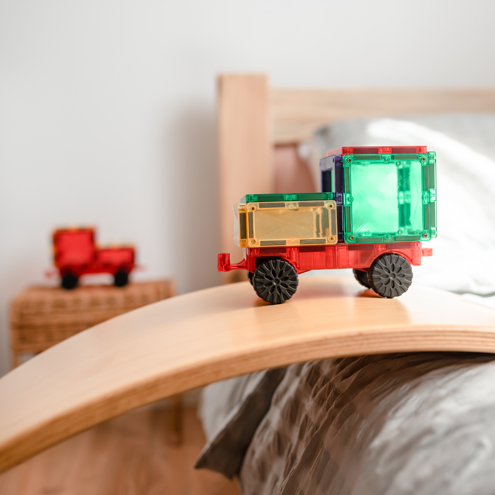 Ten 24-elementowy zestaw w kolorach tęczy to początek nieskończonych konstrukcji dzięki którym dziecko budując trójwymiarowe zamki, mosty czy kosmiczne rakiety, nieświadomie rozwija umiejętności STEAM (nauka, technologia, inżynieria, sztuka, matematyka) – od fizyki magnetyzmu po geometrię przestrzenną!