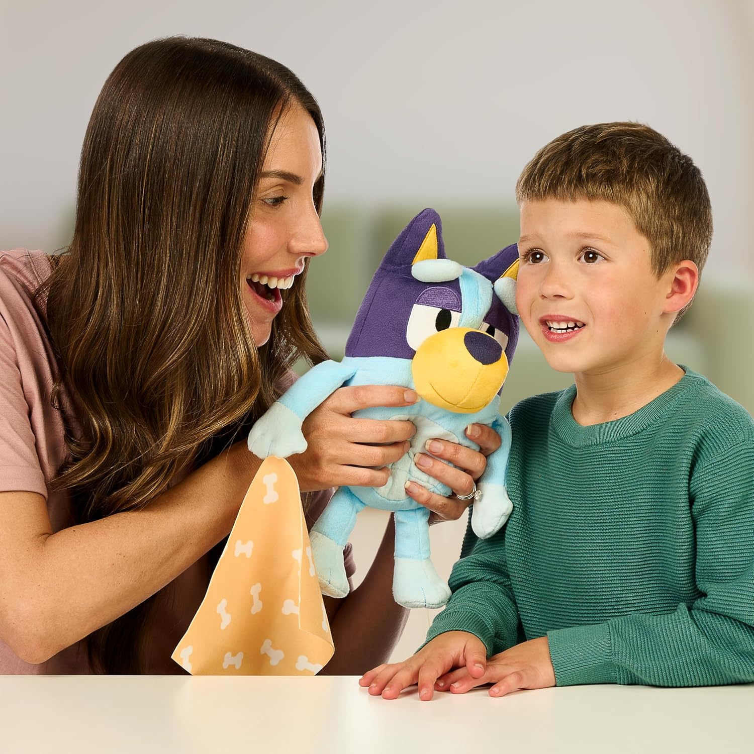 Poznaj uroczy świat Bluey! Maskotka Bluey to 30‑centymetrowa pluszowa maskotka z kocykiem, stworzona z wyjątkowo miękkich materiałów i precyzyjnym przeszyciem, która umili każdą noc i poranki pełne przytulania.