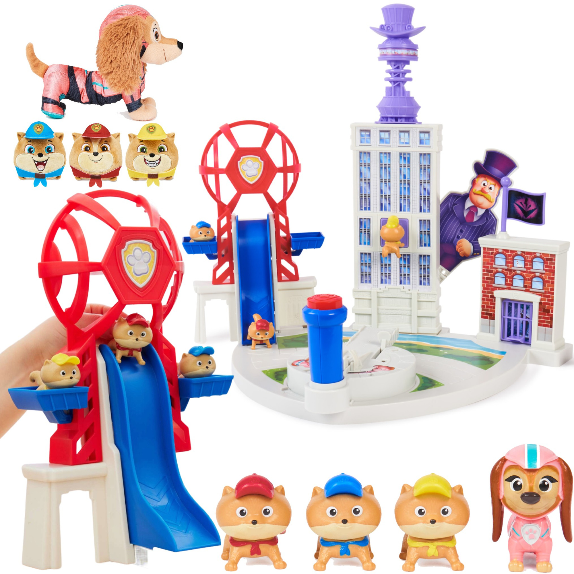 Liberty Wyrzutnia Obrotowa Psi Patrol Baza Piesków The Mighty Movie + Pomps zestaw z maskotkami Gund Liberty 20 cm