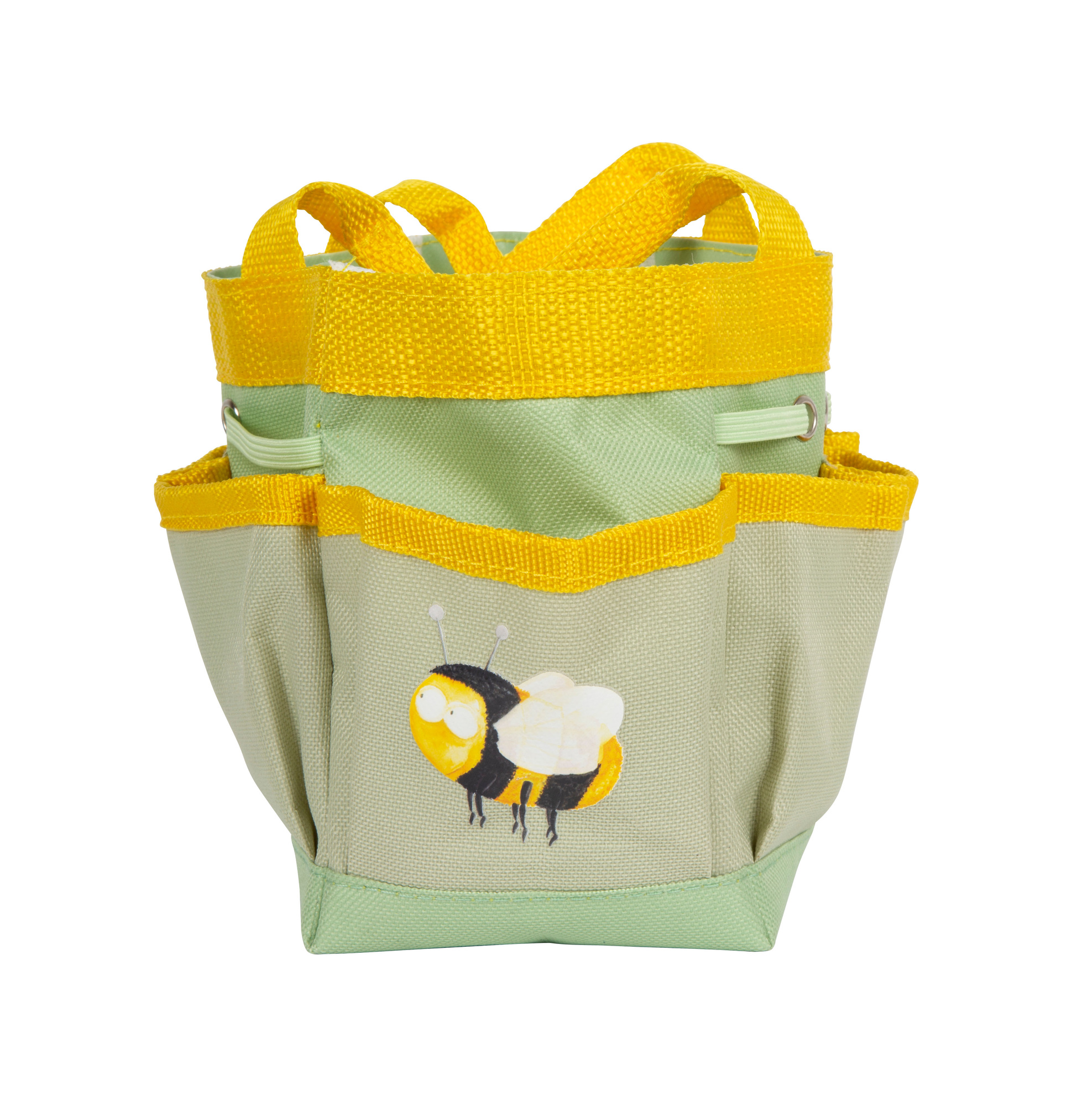 - Materiały przyjazne dzieciom – metalowe końcówki narzędzi wykonane ze stali, rękojeści z gładkiego drewna, a torba z mocnej bawełnianej tkaniny.