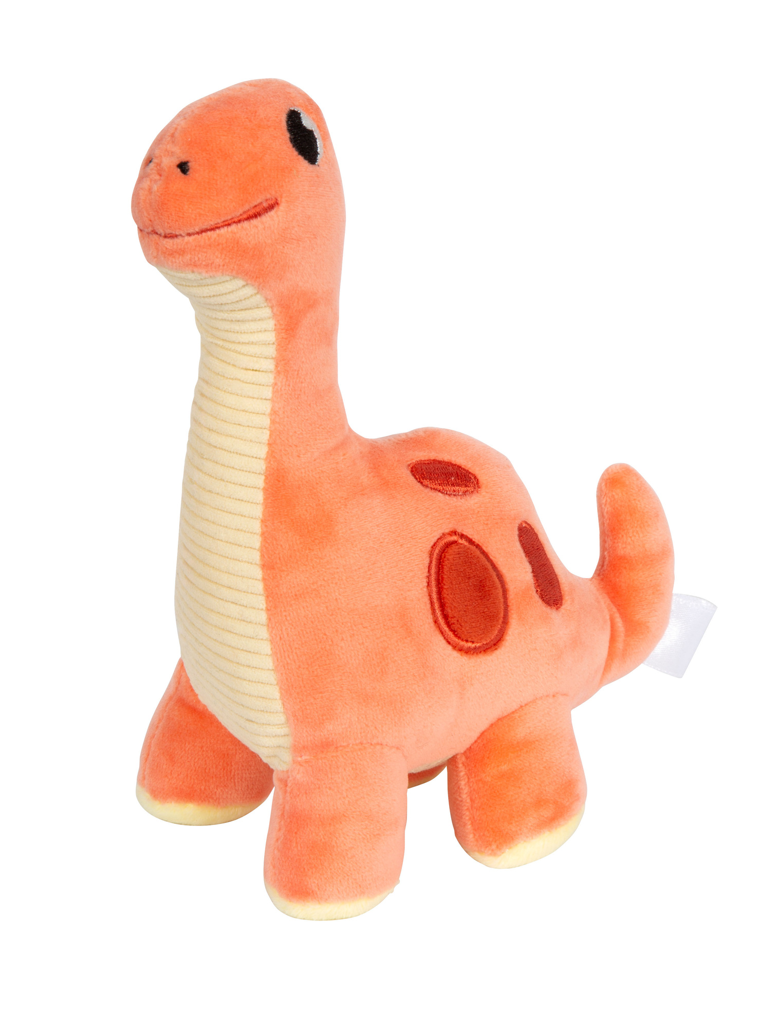 - Poznaj uroczego, pluszowego dinozaura „Orange Dino”, idealnego towarzysza zabaw i snu dla dzieci od pierwszych miesięcy życia!