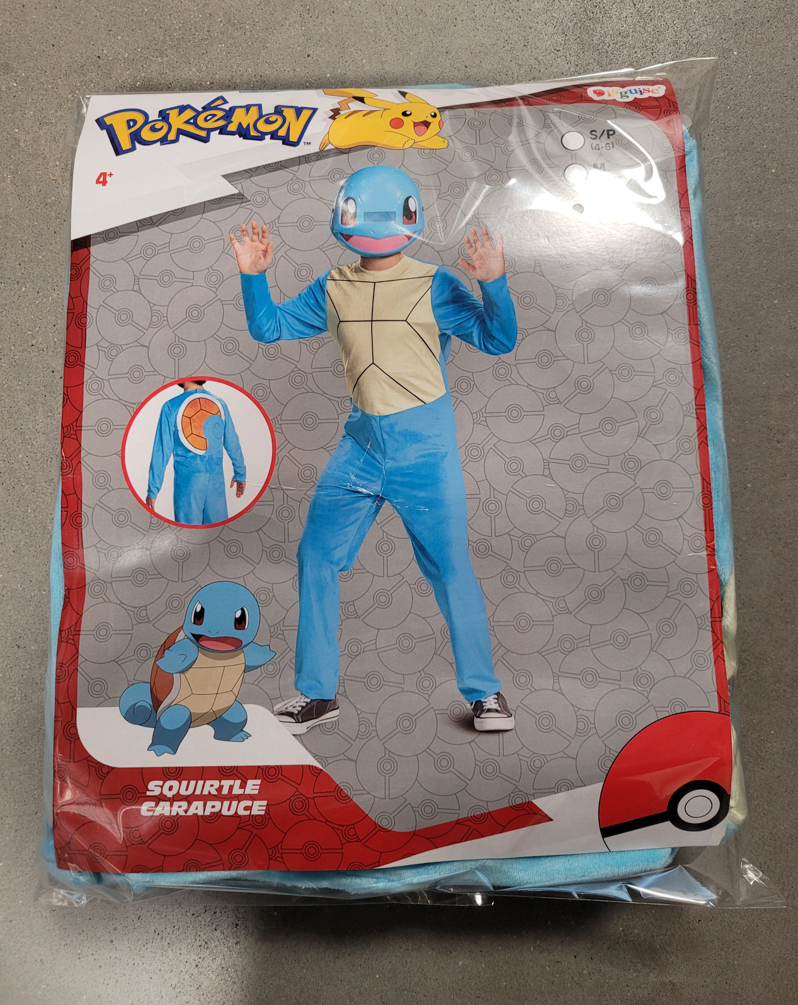 - Zawiera błętkitny kostium z maską, dzięki czemu dziecko może upodobnić się do wodnego Pokemona - Squirtle'a.