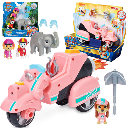 Psi Patrol Liberty pojazd + figurka The Movie Film piesek i motor + Zestaw Psi Patrol Jungle Pups figurki Skye Marshall+ akcesoria