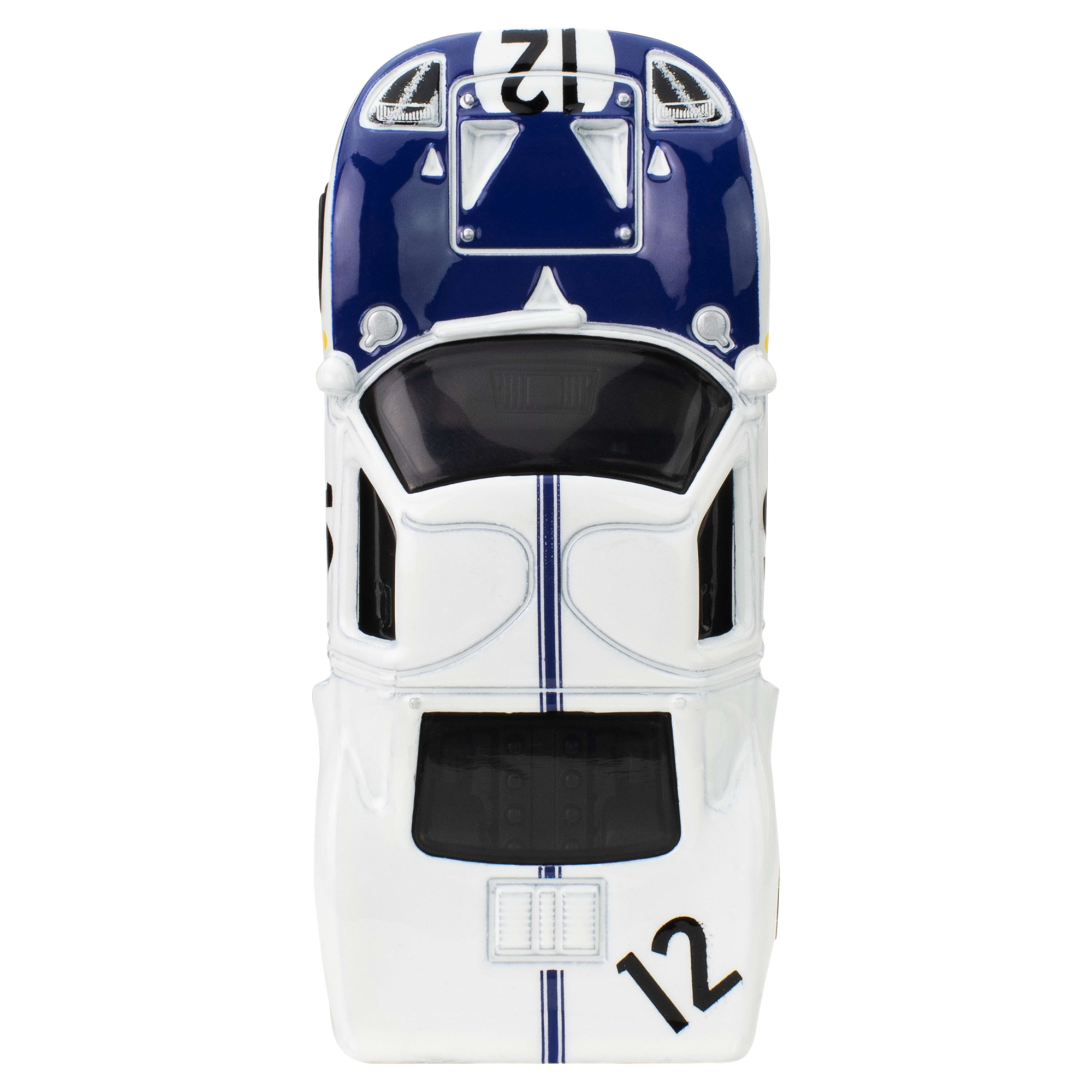 To Ford GT40 w białym kolorze z granatowymi akcentami. Auto zostało odwzorowane w skali 1:64, z dbałością o każdy detal.