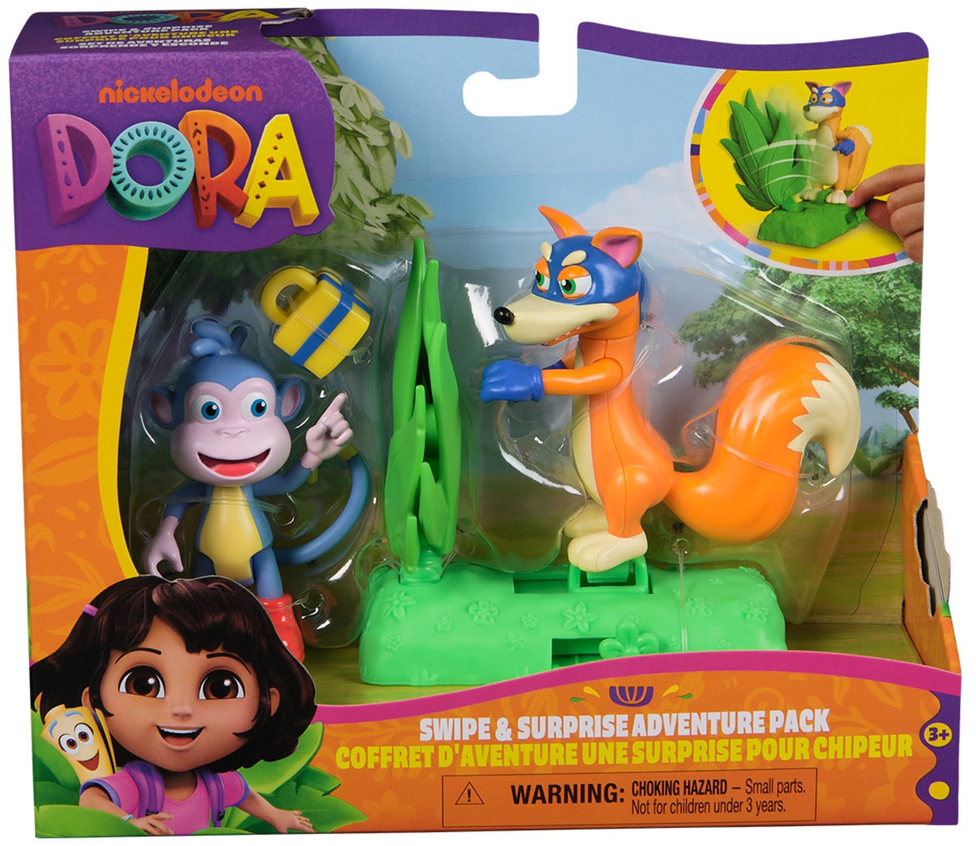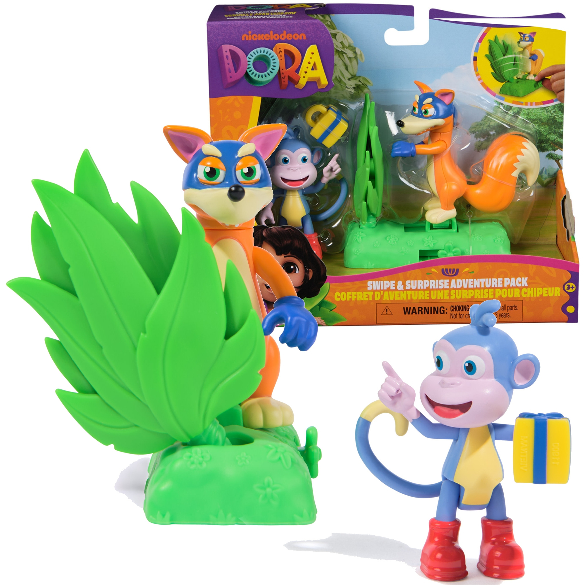 Zestaw Swipe & Surprise to doskonały prezent dla fanow bajki "Dora Poznaje Świat", ale także dla każdego, kto pragnie wcielić się w rolę bohaterów z bajki i odegrać własne sceny. Niech Twoja wyobraźnia rozkwita wraz z wesołymi bohaterami!