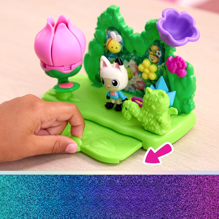 Scena staje się wyjątkowym miejscem, gdzie Kiciuś może podziwiać pielęgnować rośliny czy relaksować się w towarzystwie innych postaci z Kociego Domku Gabi.