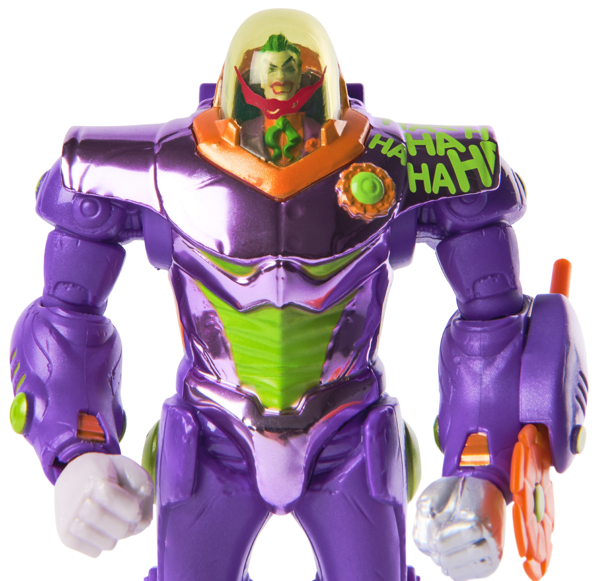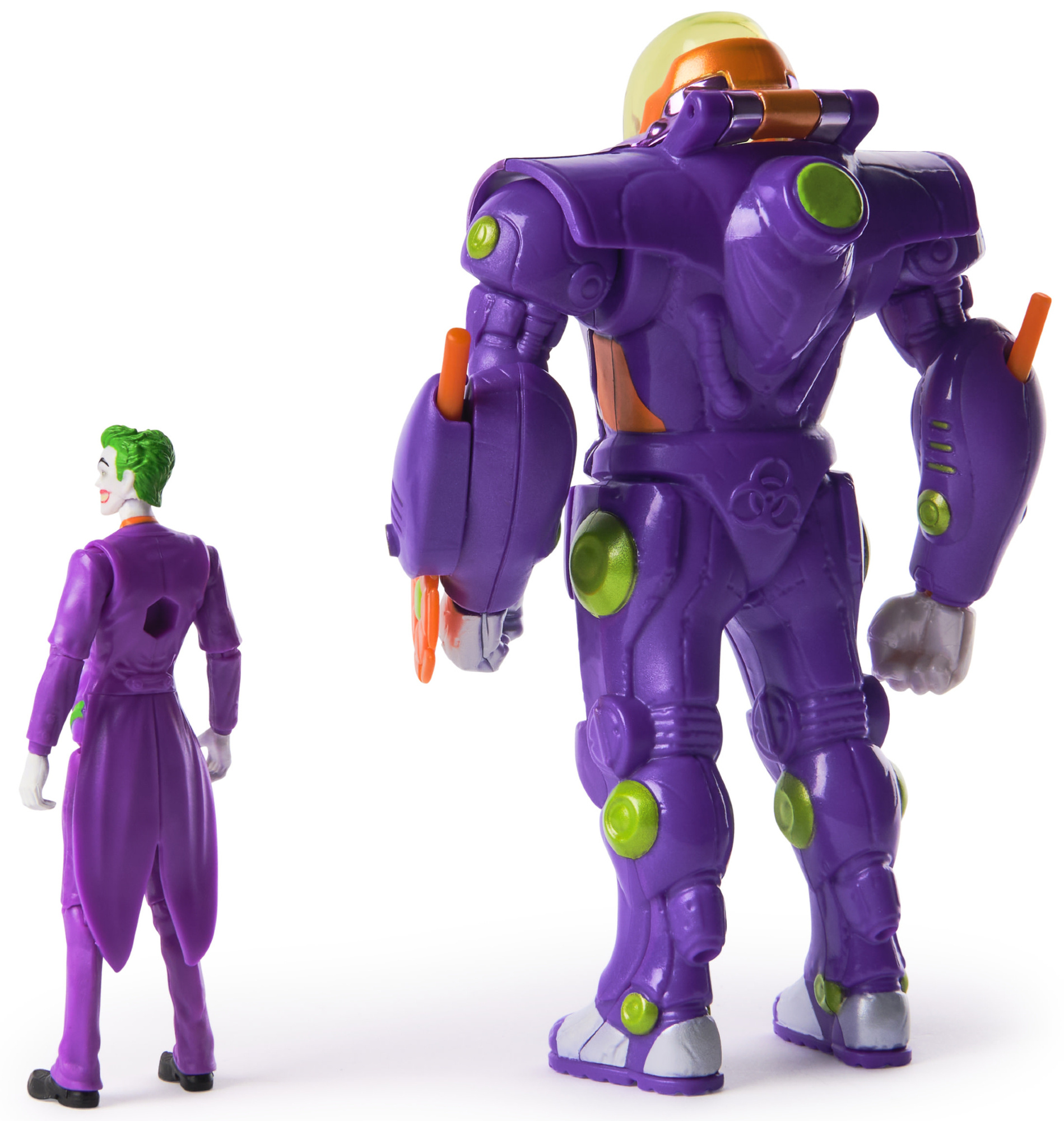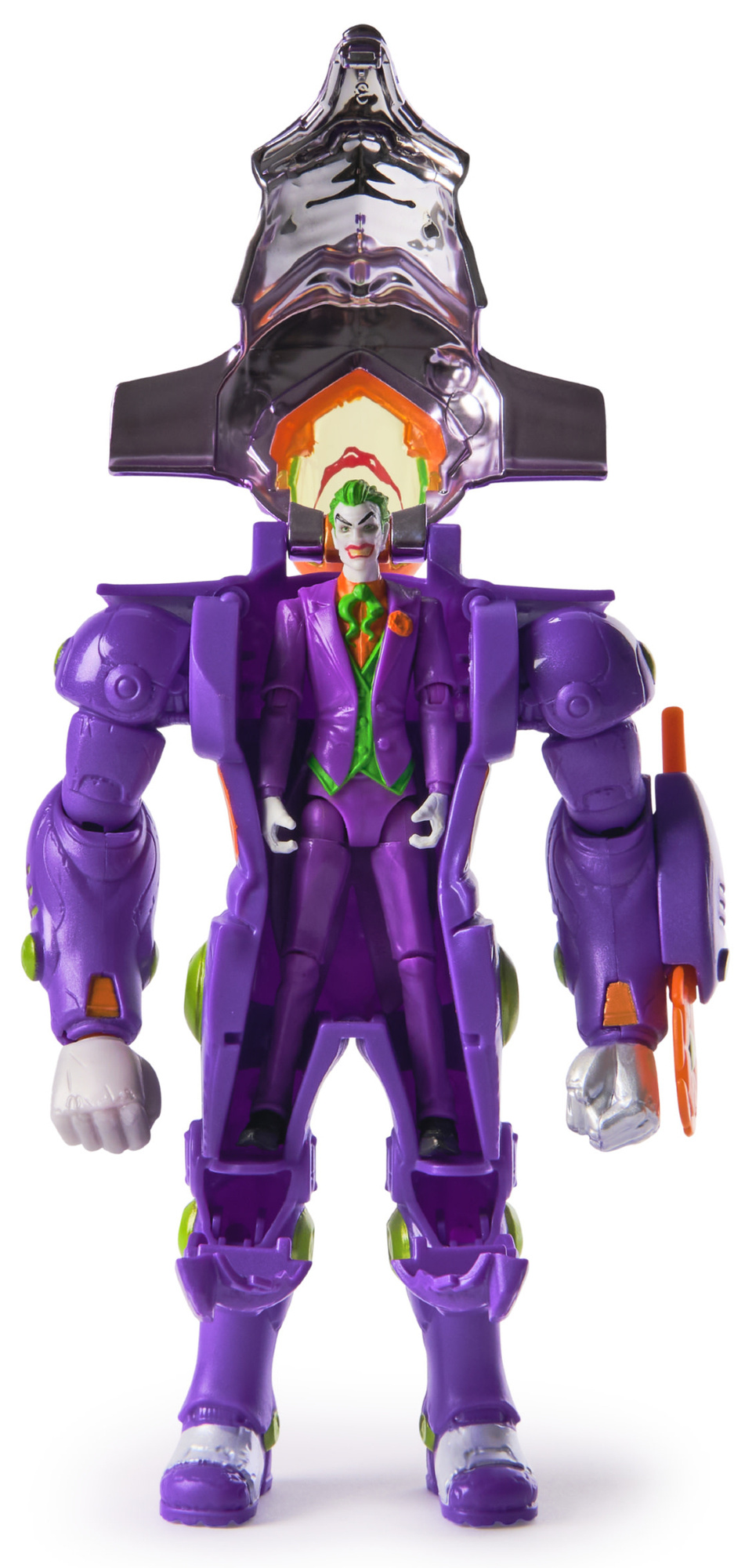 Figurka przedstawia postać Jokera w charakterystycznym fioletowym garniturze z zielonymi dodatkami. Poza nim, w zestawie znajduje się duża zbroja, która jest kompatybilna z figurką. W opakowaniu znajdziemy również się bronie, które można przyczepić do dłoni zbroi oraz jego karta postaci.