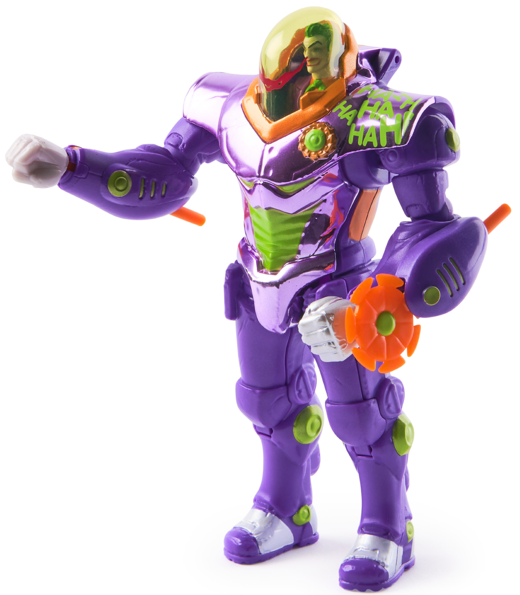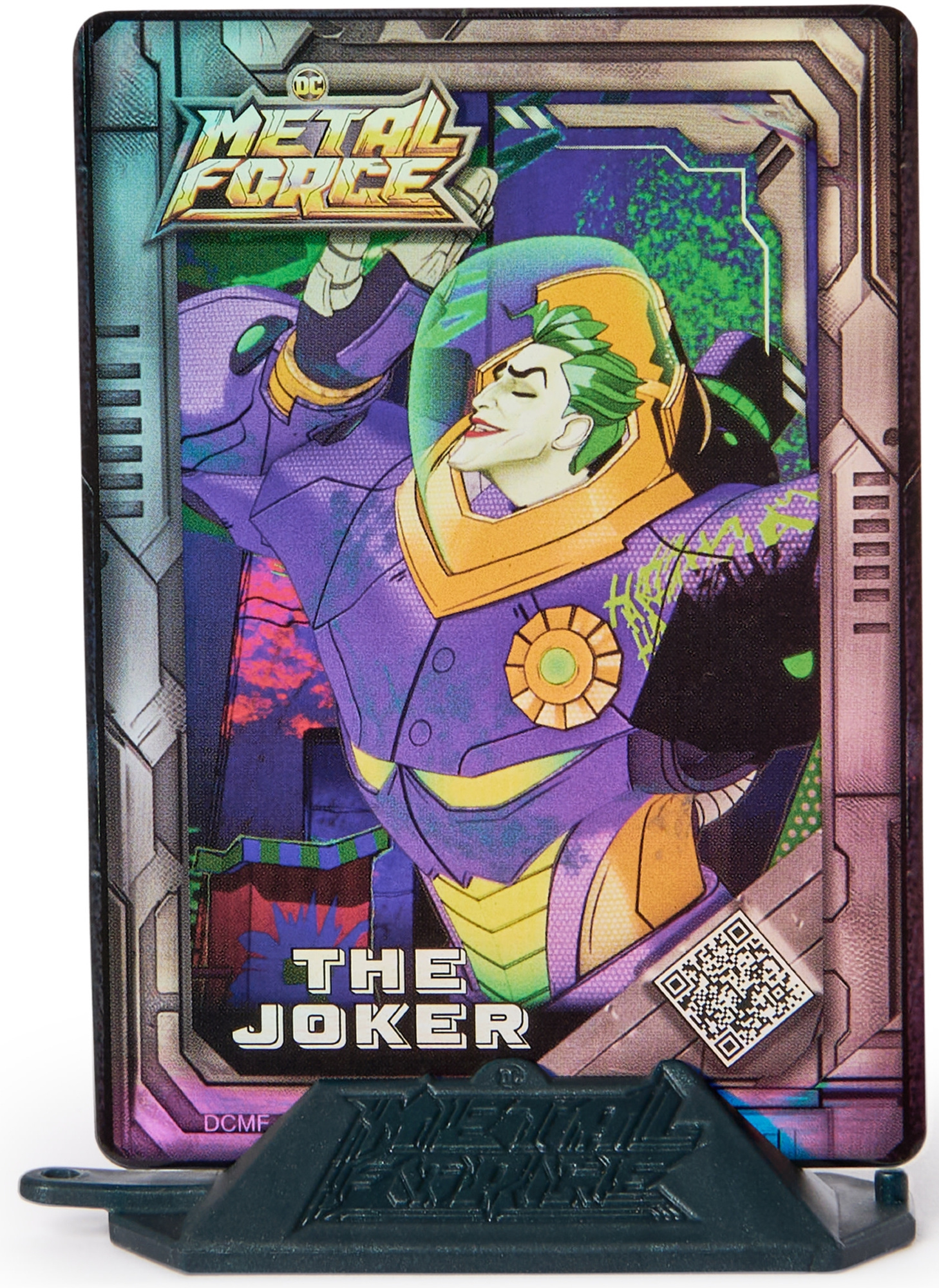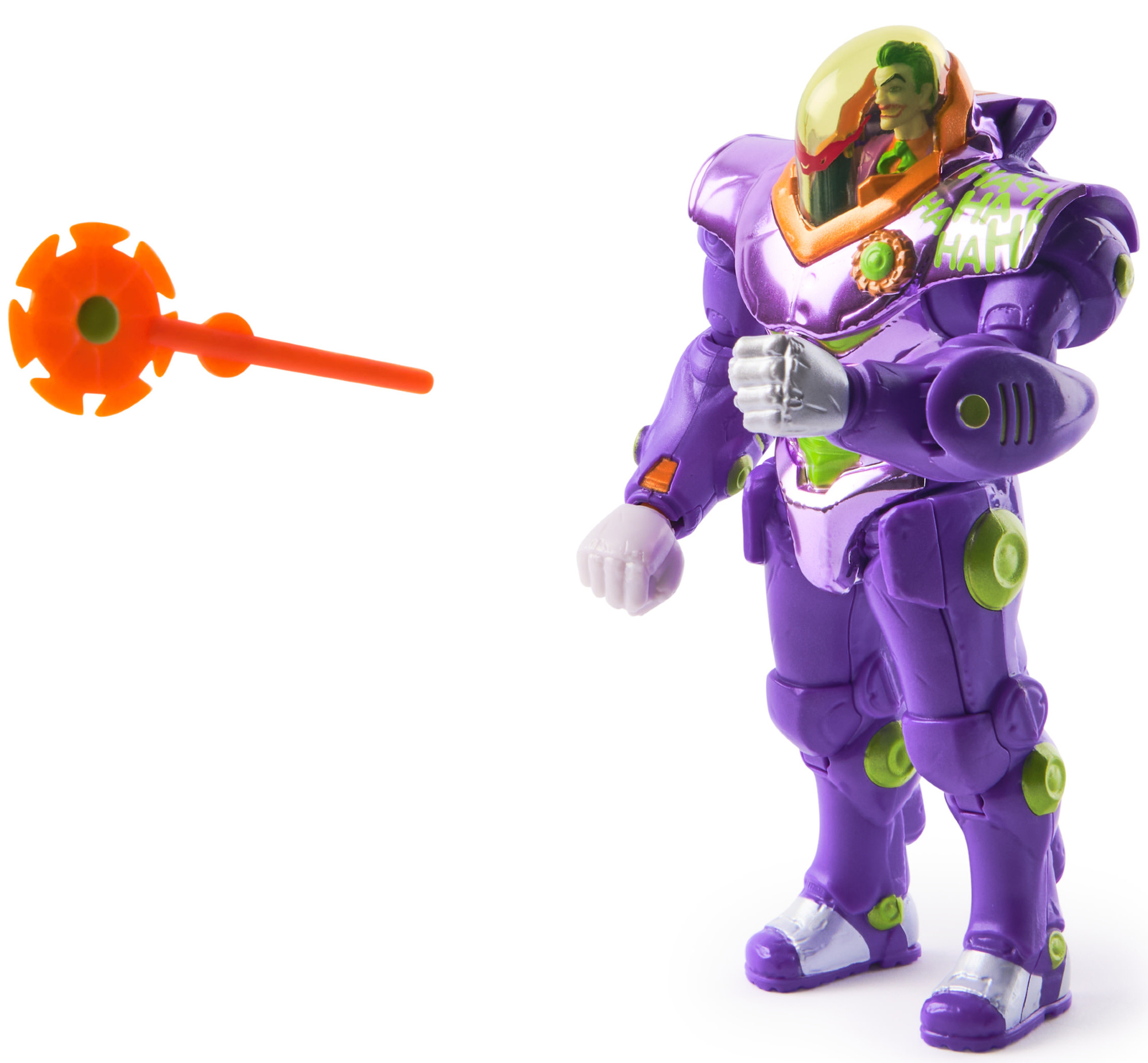 Figurka przedstawia postać Jokera w charakterystycznym fioletowym garniturze z zielonymi dodatkami. Poza nim, w zestawie znajduje się duża zbroja, która jest kompatybilna z figurką. W opakowaniu znajdziemy również się bronie, które można przyczepić do dłoni zbroi oraz jego karta postaci.