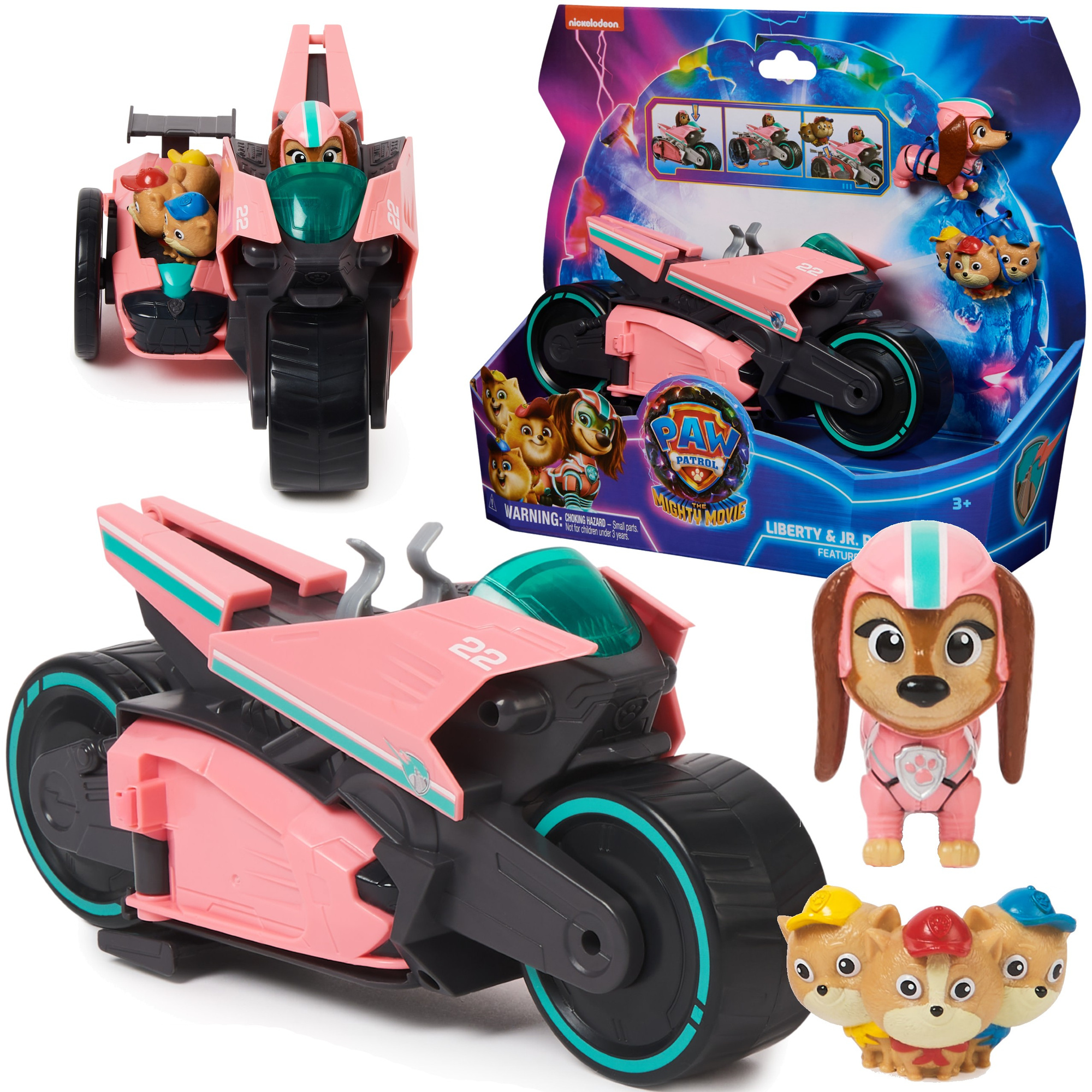 - Pojazd i figurki to wierne kopie ich filmowych odpowiedników, czyli suczki Liberty, jej motoru oraz uroczych kotków. Motor po wciśnięciu przycisku transformuje się tworząc miejsce dla małych pomocników pieska.