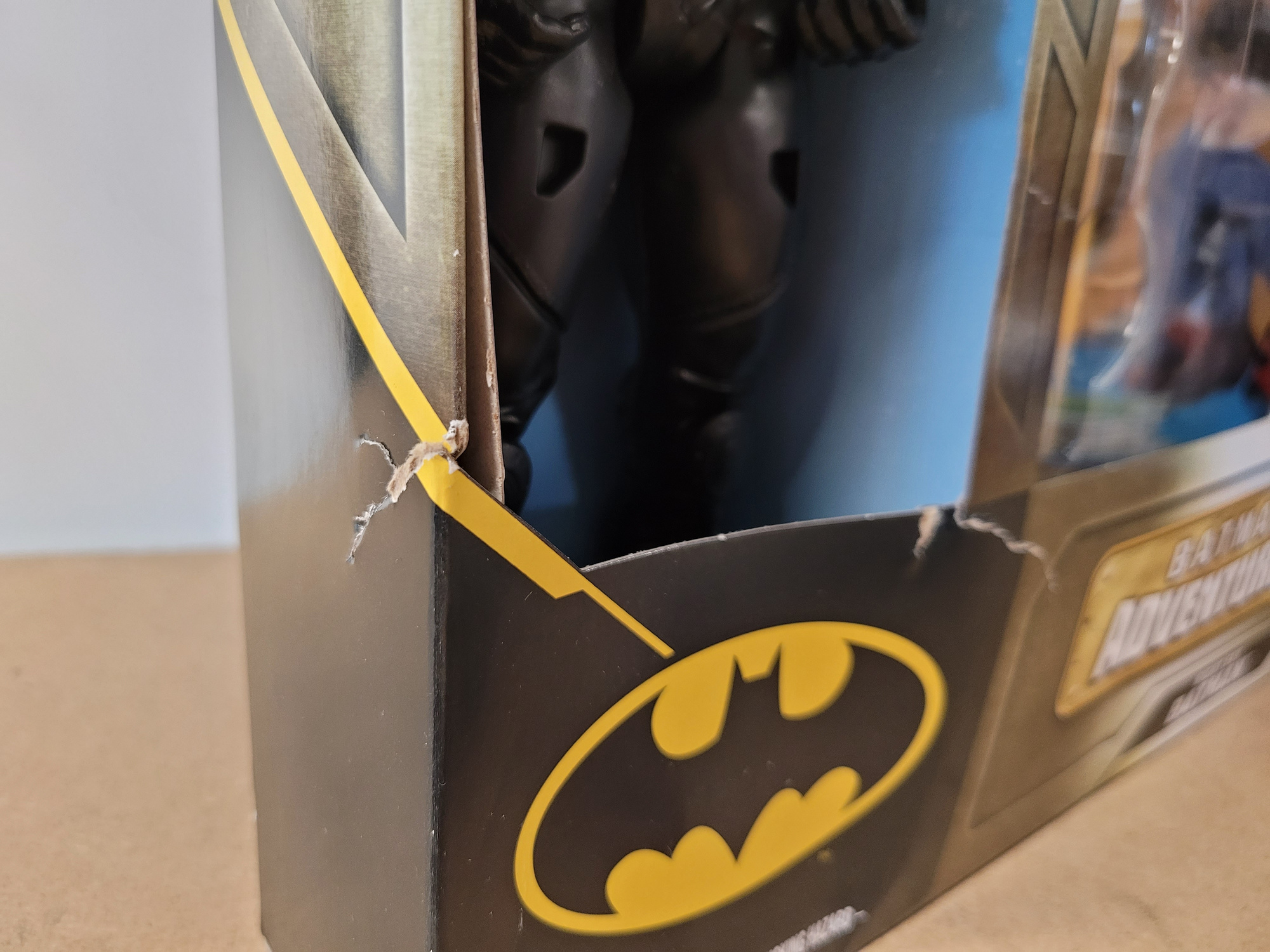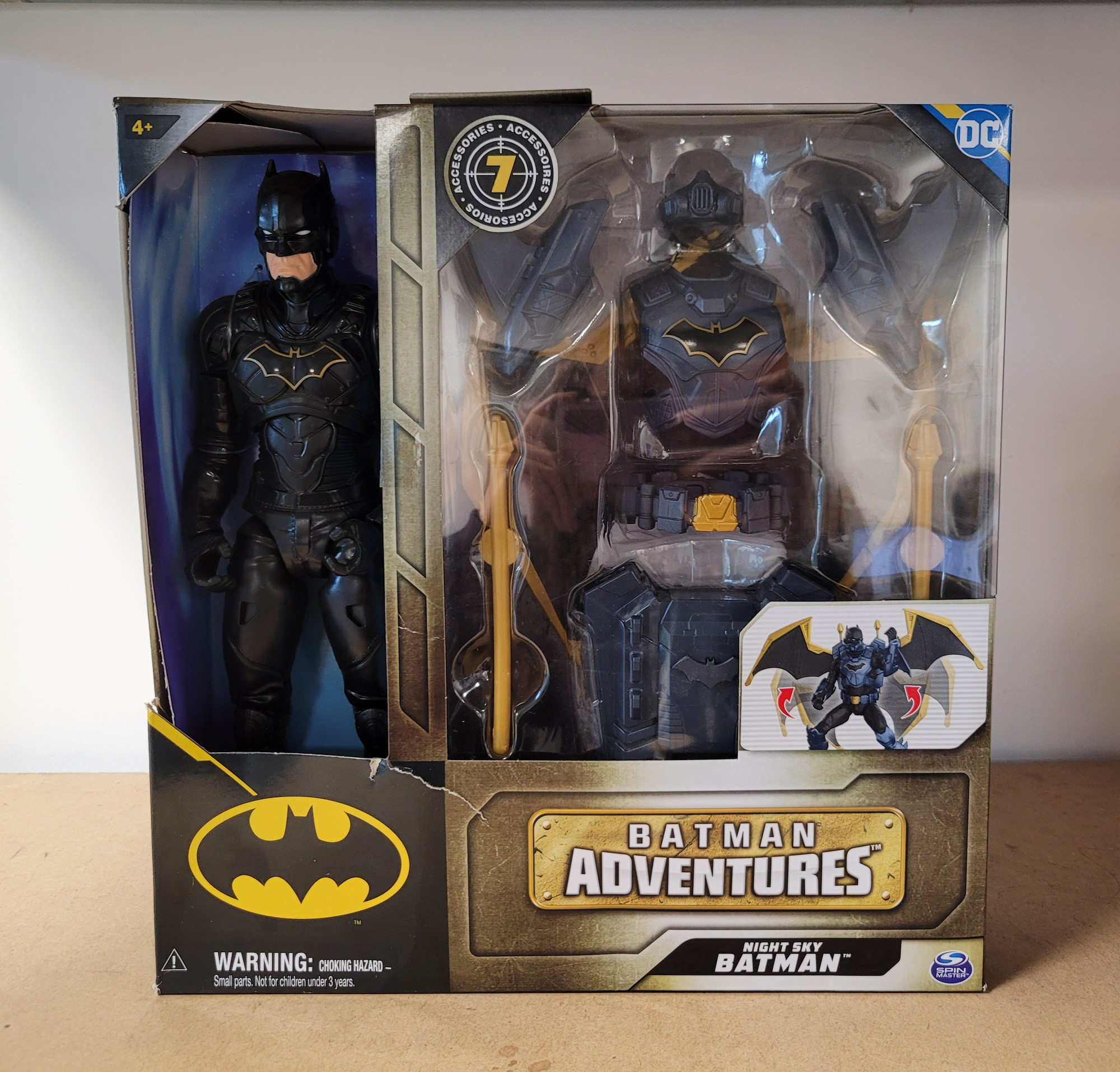 Figurka przedstawia postać Batmana w czarnym kostiumie ze złotym elementem. Człowiek Nietoperz posiada wiele punktów artykulacji - obracaną głowę, ruchome ręce, dłonie oraz nogi. Figurka ma 30 centymetrów wysokości. Pochodzi z edycji figurek od Spin Master na licencji DC Comics. Zabawka w wierny sposób oddaje pierwowzór. Do zestawu dołączono 7 akcesoriów przedstawiające zbroję i broń dla Batmana.