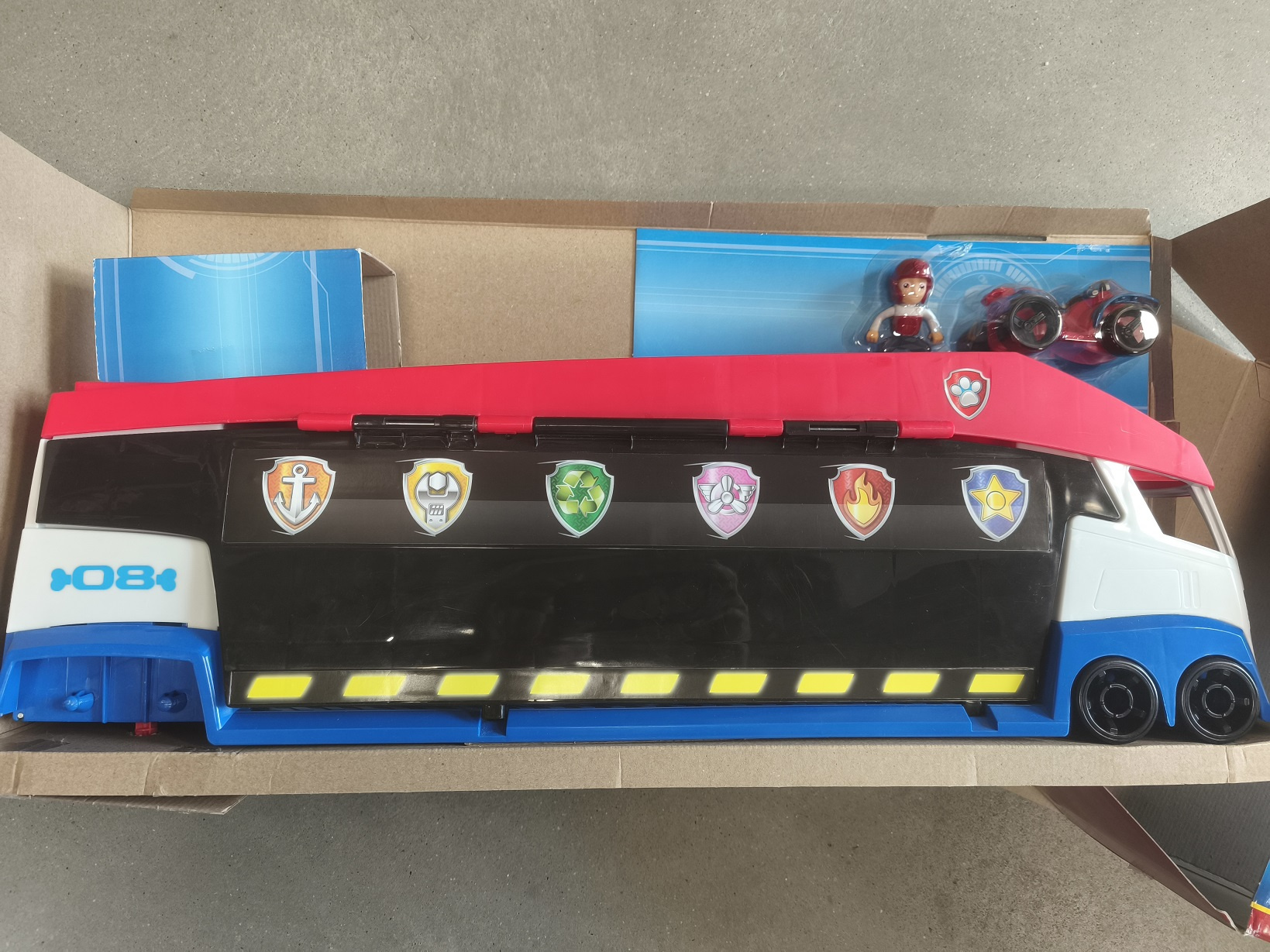 - Zestaw, na który składa się ogromna ciężarówka transportująca oraz figurka Rydera i jego quad, z serii zabawek Psi Patrol od Spin Master.
