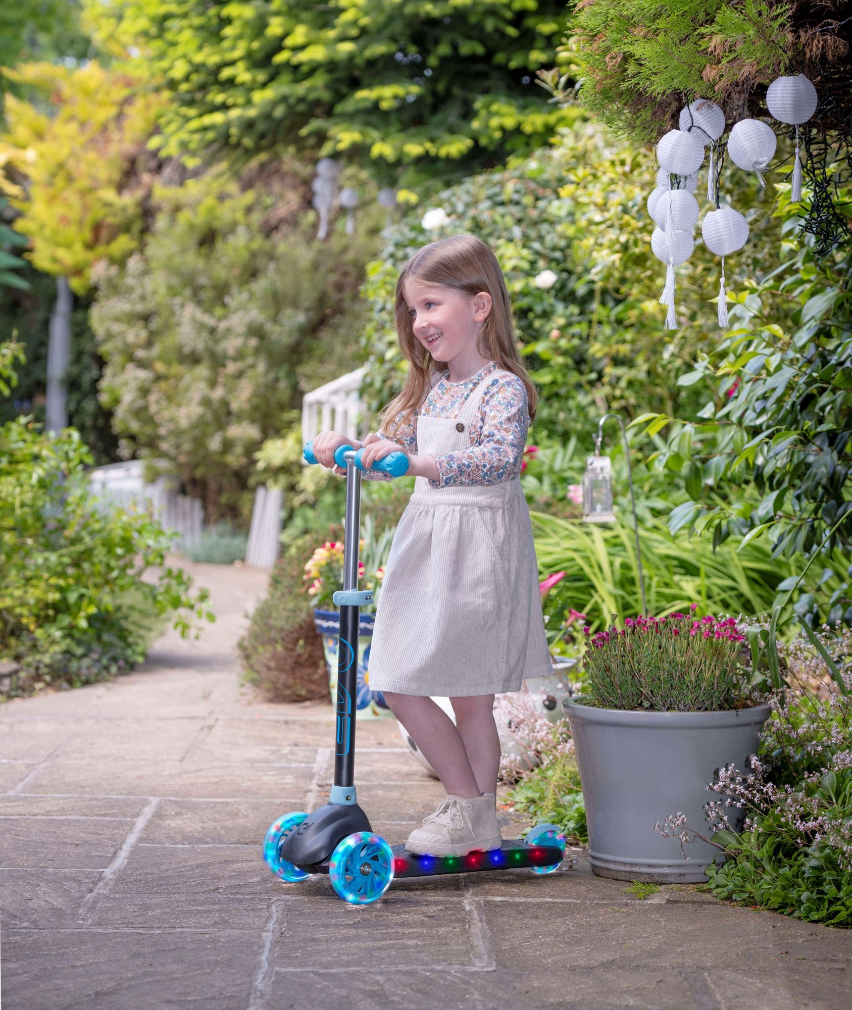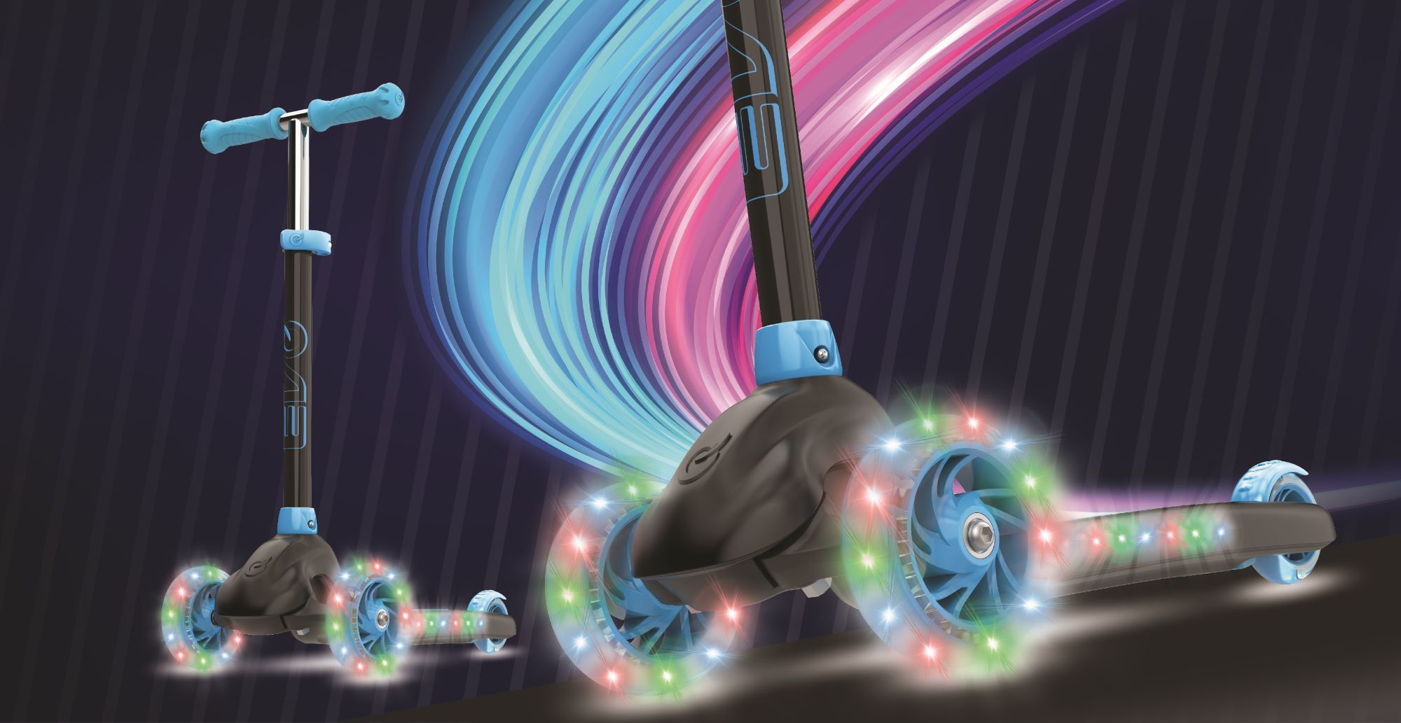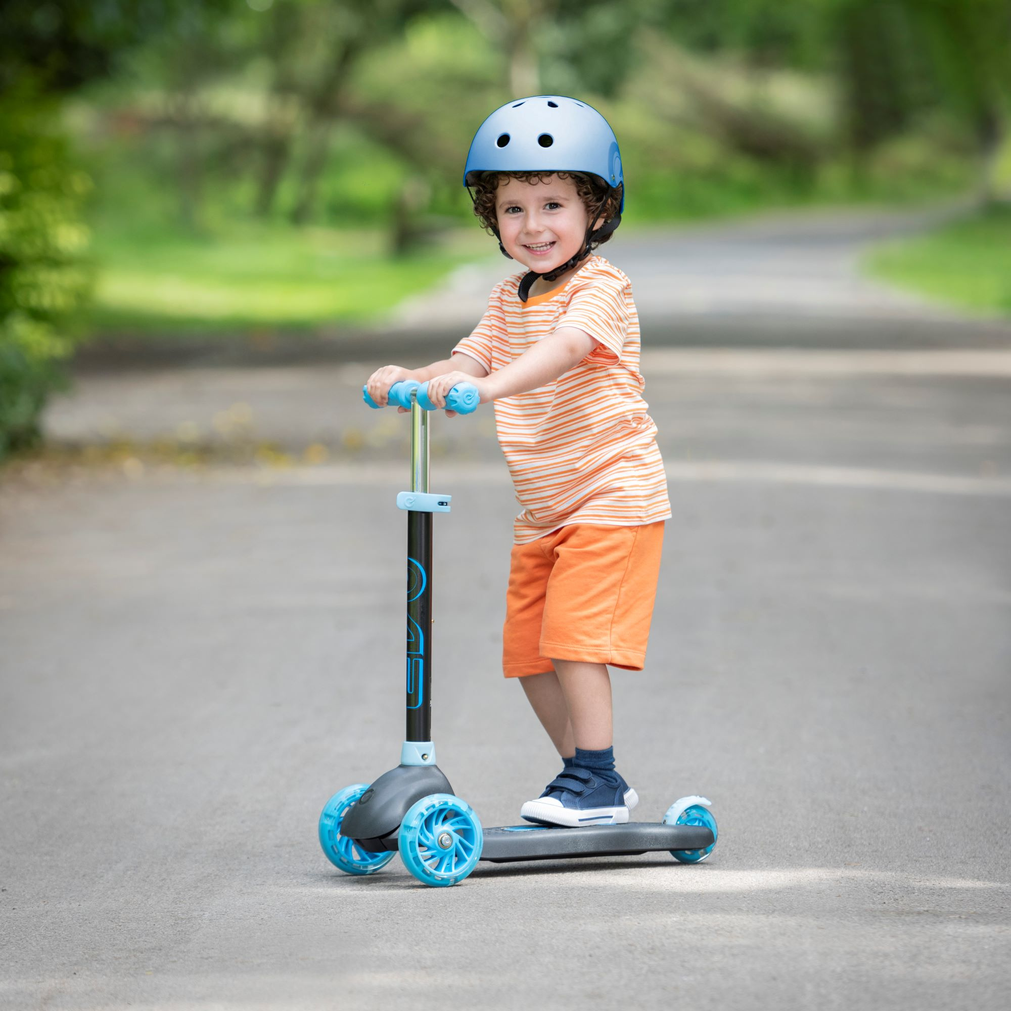 EVO Regulowana Trójkołowa Hulajnoga dla Dzieci Eclipse Niebieski Świecące kółka i Podest