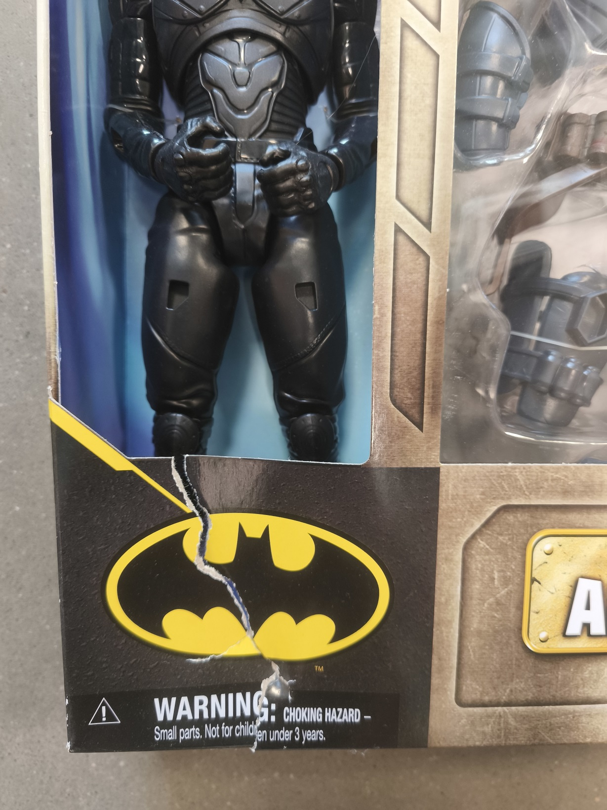 - Figurka ma 30 centymetrów wysokości. Pochodzi z edycji figurek od Spin Master na licencji DC Comics. Zabawka w wierny sposób oddaje pierwowzór. Do zestawu dołączono 16 akcesoriów przedstawiające zbroję i bronie dla Batmana.