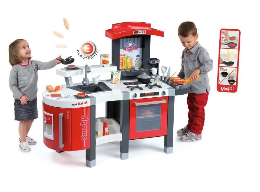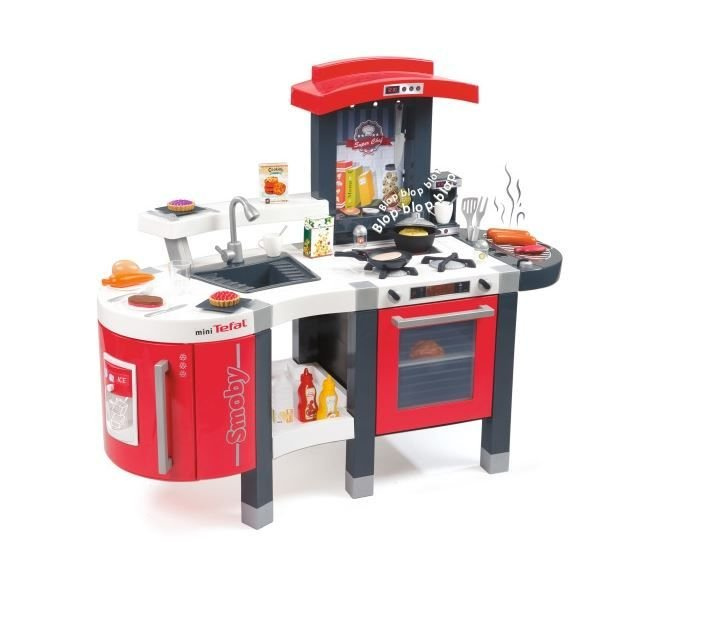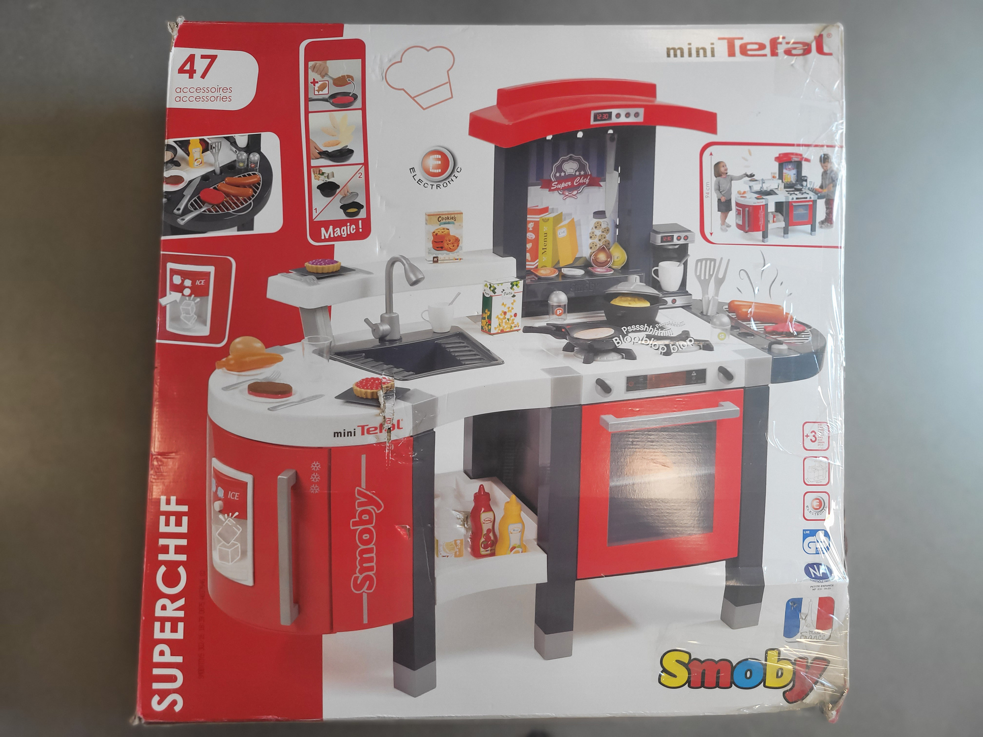 - Smoby kuchnia mini Tefal Superchef. W zestawie znajduje się kuchnia wyposażona m.in. w efekty dźwiękowe, piekarnik, lodówkę, kostkarkę do lodu, grill, okap, zlewozmywak i liczne akcesoria.