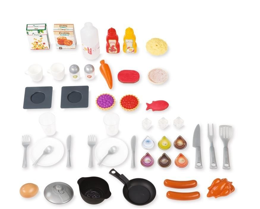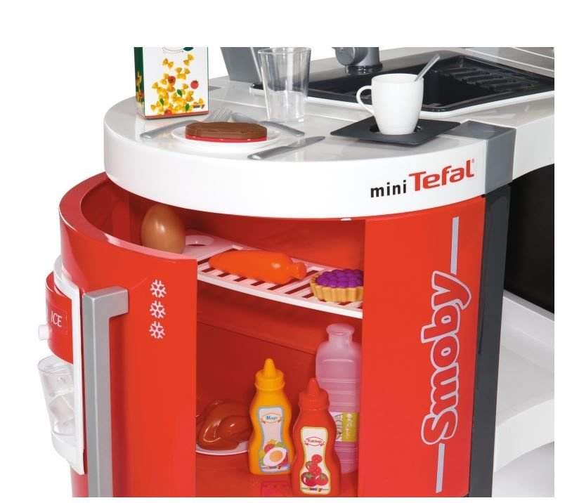 - Smoby kuchnia mini Tefal Superchef. W zestawie znajduje się kuchnia wyposażona m.in. w efekty dźwiękowe, piekarnik, lodówkę, kostkarkę do lodu, grill, okap, zlewozmywak i liczne akcesoria.